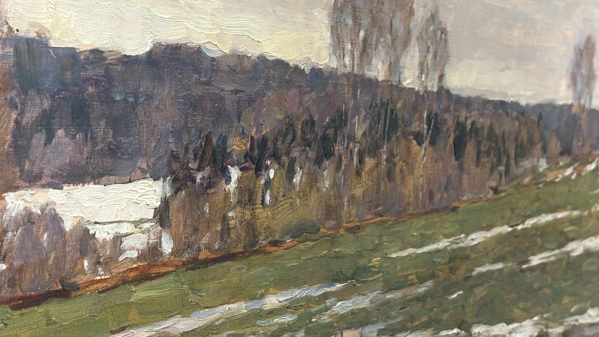 На первый взгляд — это классическая живопись. Больше 60 этюдов, написанных с натуры, полные воздуха, света и ощущения тишины. Но если задержаться у холста подольше, начинаешь понимать, что перед зрителем не просто пейзаж, а внутренний мир автора. Где-то можно разглядеть уют русской деревни, а где-то широту средней полосы.
