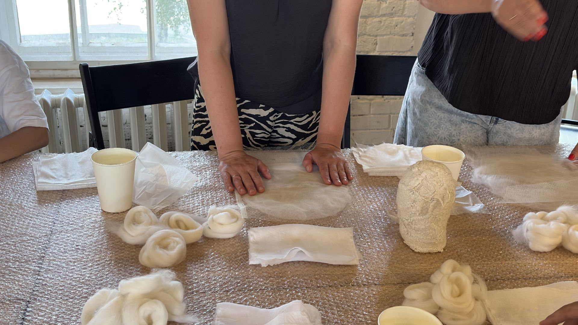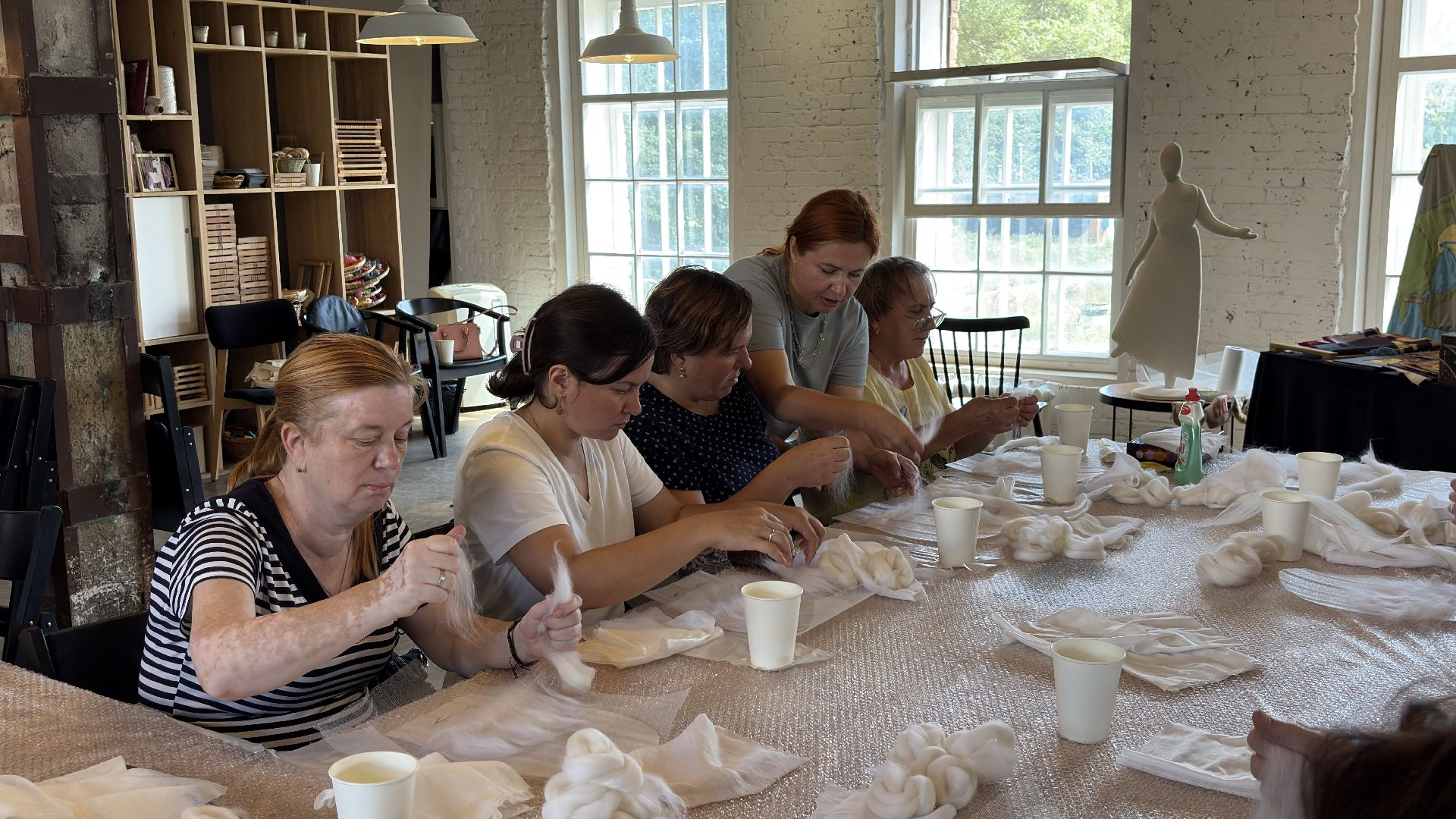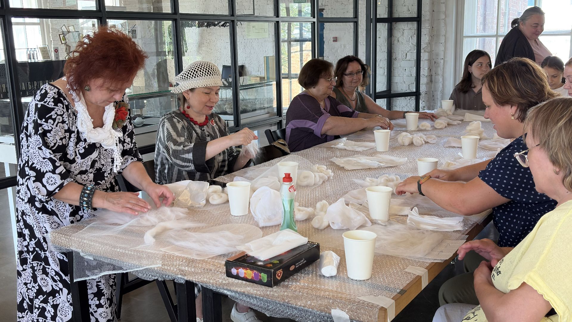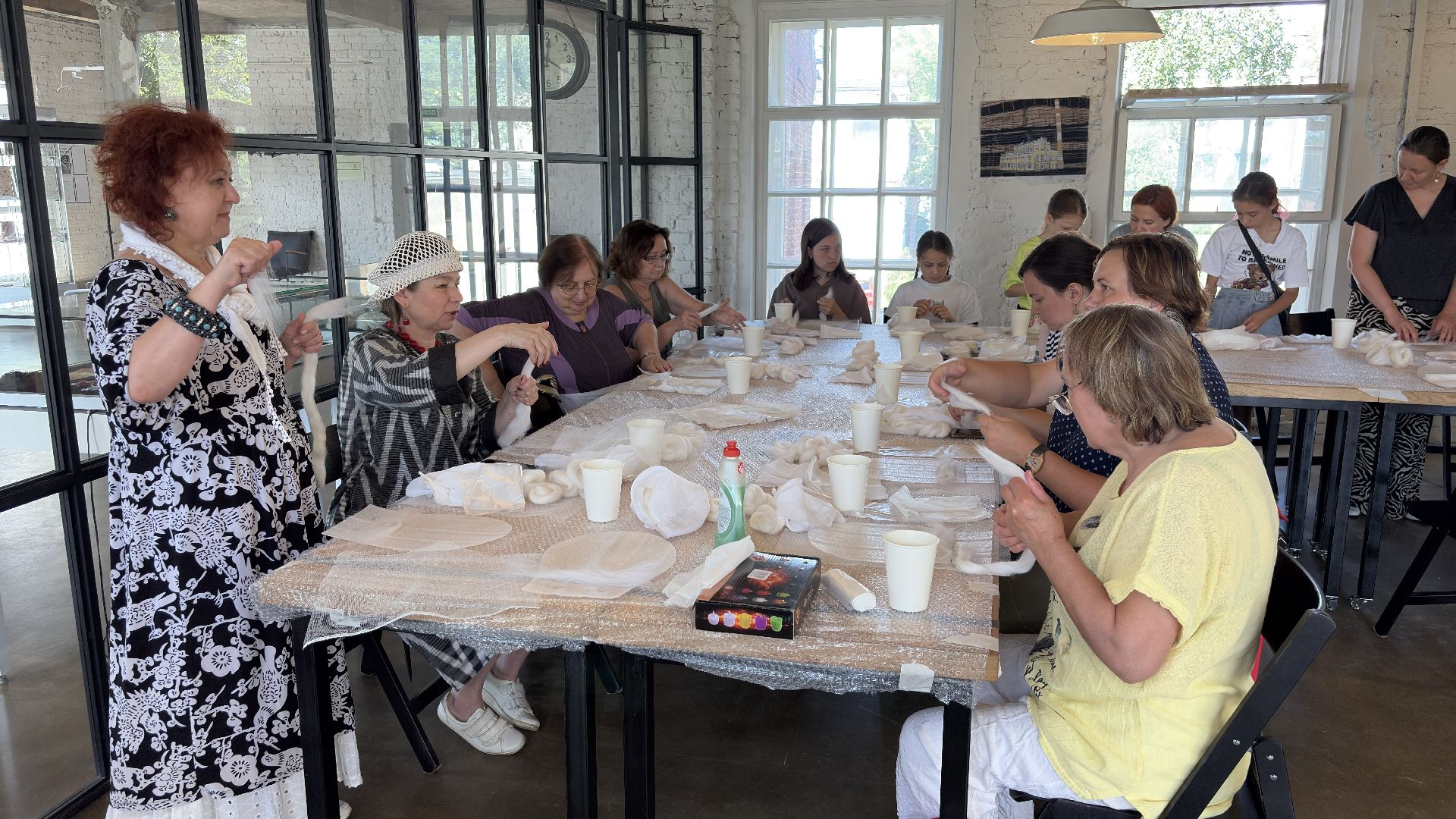 Мастер-класс провели для двух десятков человек с самым разным опытом. Несмотря на потенциальные сложности, Елена предпочитает гибкий подход, опираясь на живое взаимодействие и интуицию. По её словам, творческий процесс важнее точности инструкции, а любое погружение в ручной труд запускает эмоциональное включение и глубинное понимание материала.