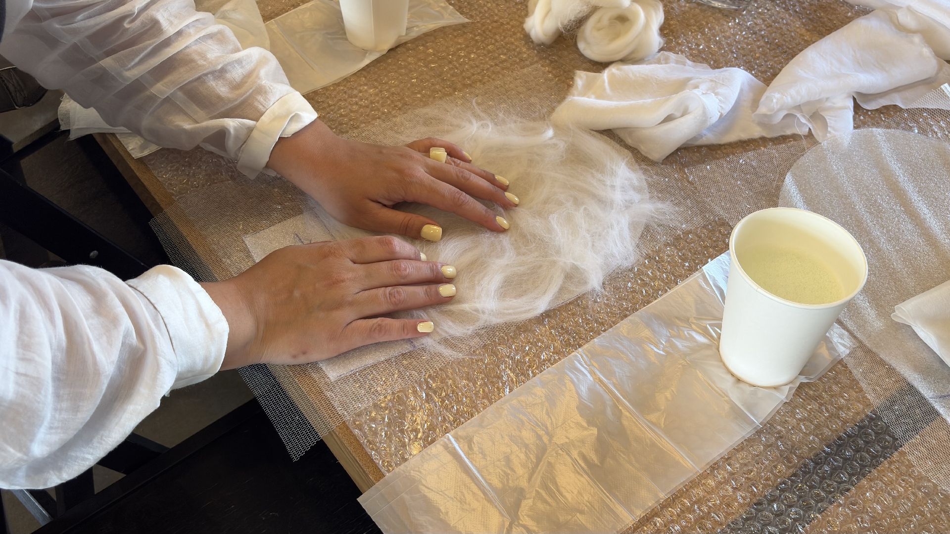 В дизайн-резиденции «Шёлковая фабрика» прошёл мастер-класс художника из Красноярска Елены Дудыриной, участницы проекта «Канительные дела». Участники под её руководством создавали необычный предмет интерьера светильник в форме кокона, выполненный из шерсти в технике мокрого валяния.