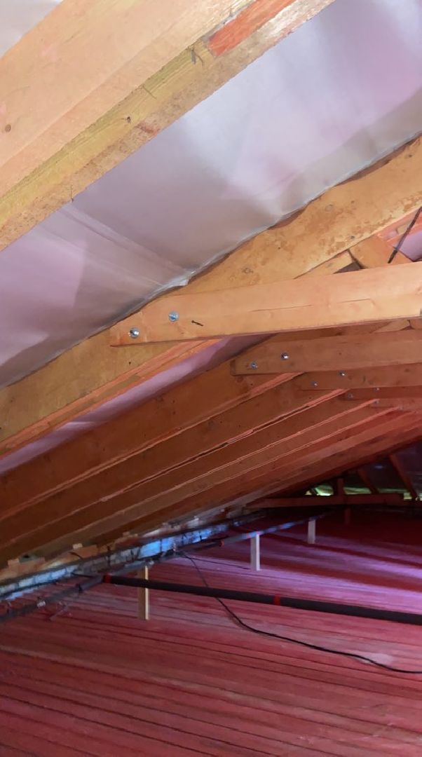 На чердаке строители отремонтировали вентиляционные шахты, заменили слуховое окно и утеплили чердачные перекрытия плитами из минеральной ваты.