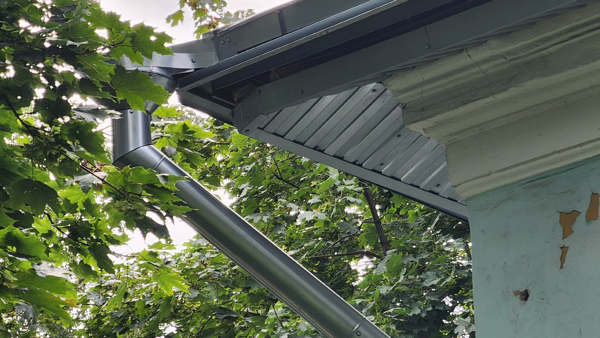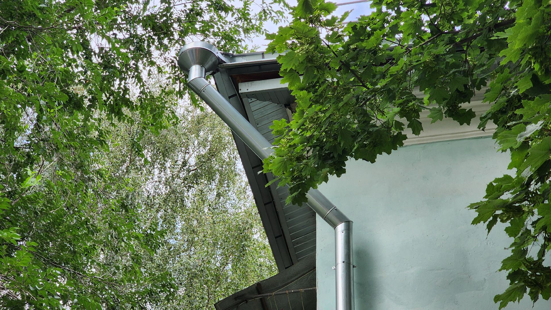 Финальным штрихом стала замена системы наружного водостока: здесь заменили водосточные трубы, воронки, крепежи.