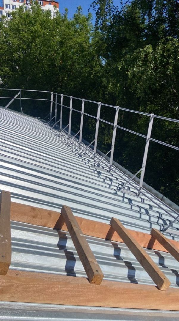 Кровельщики разобрали полностью все деревянные конструкции. Кровлю вскрывали постепенно, чтобы избежать заливов от дождя. Новая стропильная система из сосны отлично переносит нагрузки в нашем климате. Рабочие выполнили её огнебиозащиту. Старый шифер заменили современным покрытием из профилированного кровельного железа.