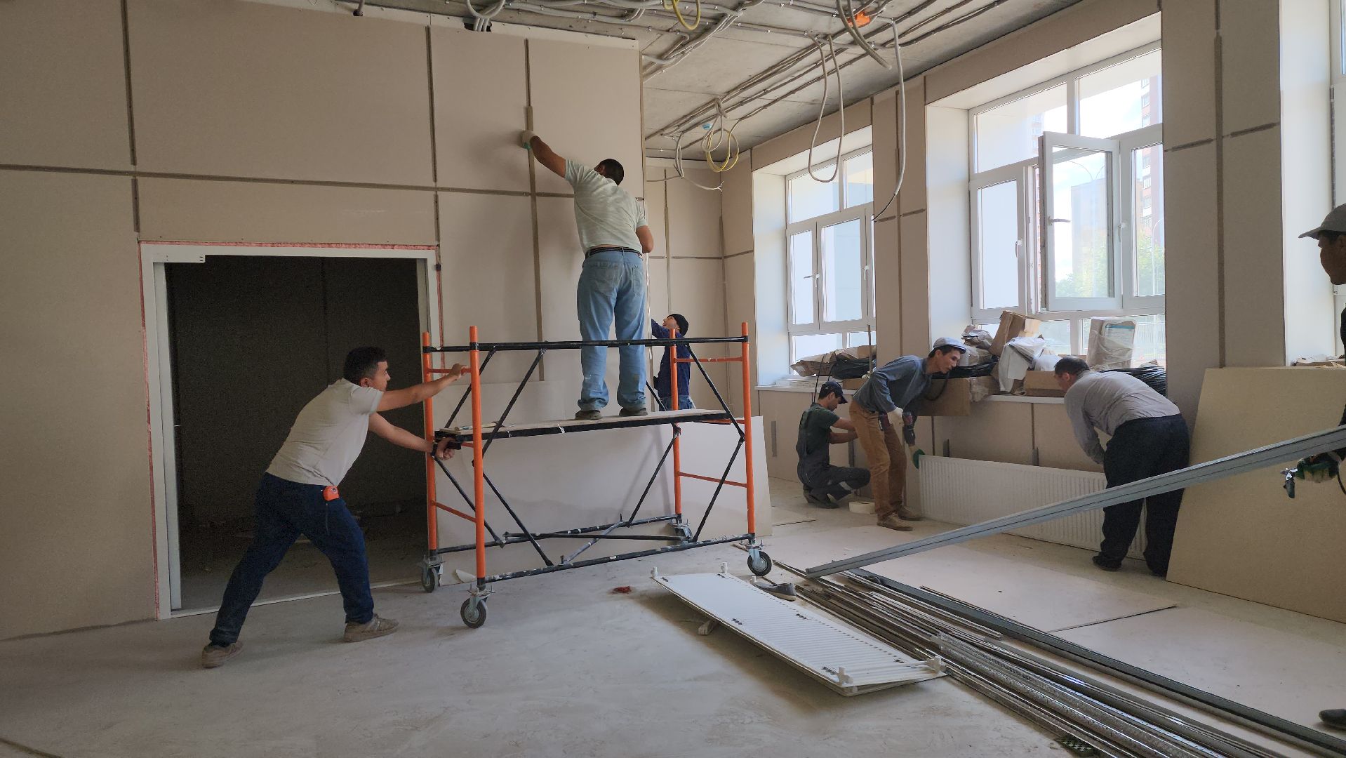 Руководитель проекта подрядной организации «Воздвижение» Роман Камелев рассказал, что они приняли ВОК в марте 2024 года. Школа была рассчитана на 1000 учеников, но благодаря перепланировке по новому проекту вместимость увеличили на 100 мест.