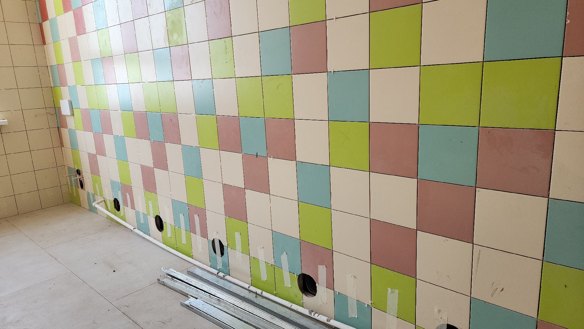 Долгожданный воспитательно-образовательный комплекс на Угрешской строители готовят к открытию 1 сентября. Сейчас здесь помещения убирает клининговая служба, всего 60 человек. Параллельно подрядчики монтируют оборудование и выполняют пусконаладочные работы.