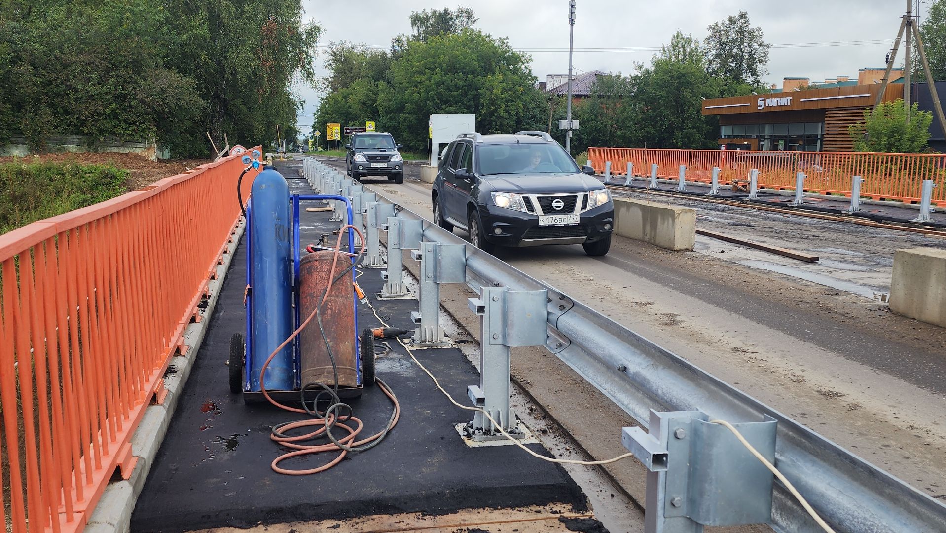 Все ответственные конструкции автомобильного моста строители уже установили и закрепили. За время ремонта заменили не только пролёты, но и так называемые конусы — специальные откосы, защищающие основание путепровода. После ремонта мост стал шире на два метра, для чего специалисты установили четыре дополнительные опоры. Облагородили строители и прилегающие к мосту участки: сделали тротуары и уже заасфальтировали их.