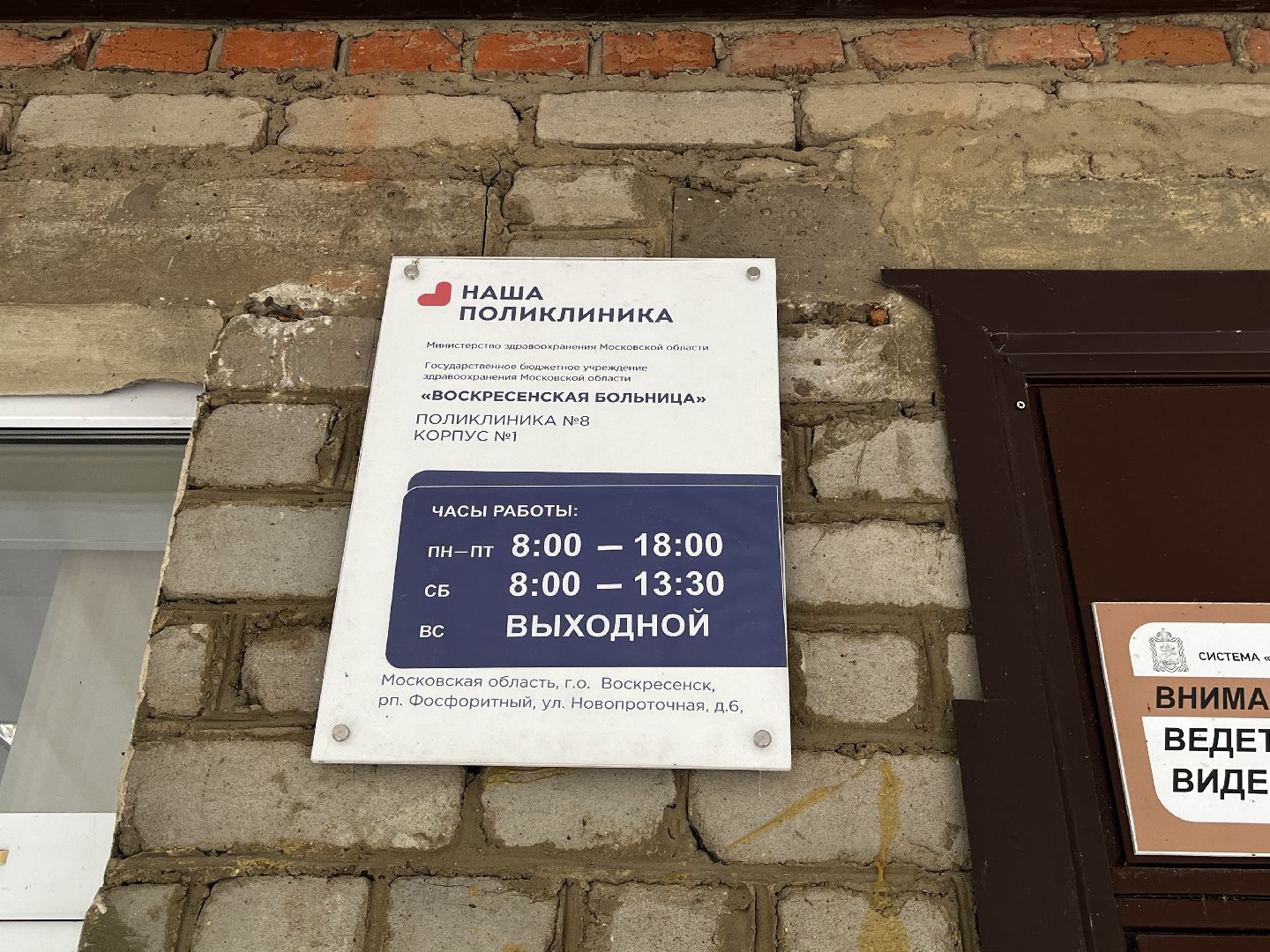 г. о. Воскресенск, посёлок городского типа Фосфоритный, поликлиника №8, Ново-Проточный пер., д. 6, 9:30
