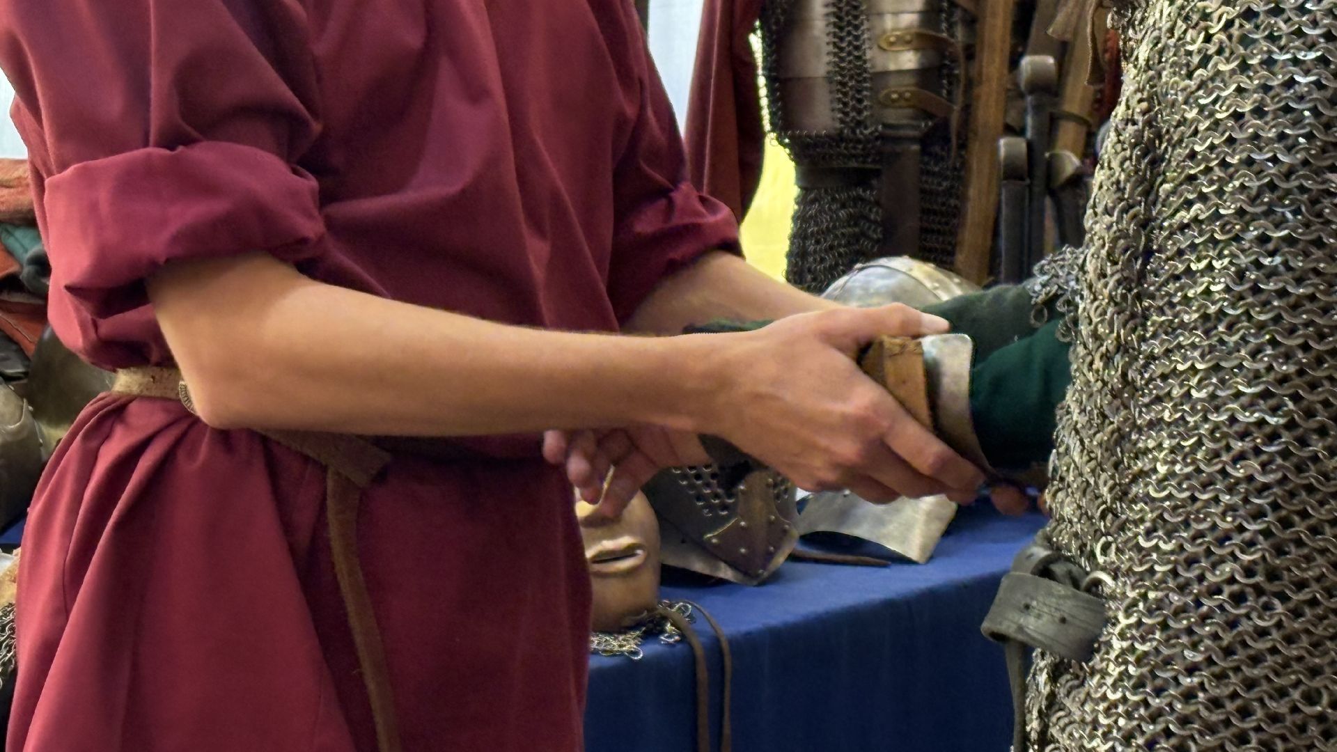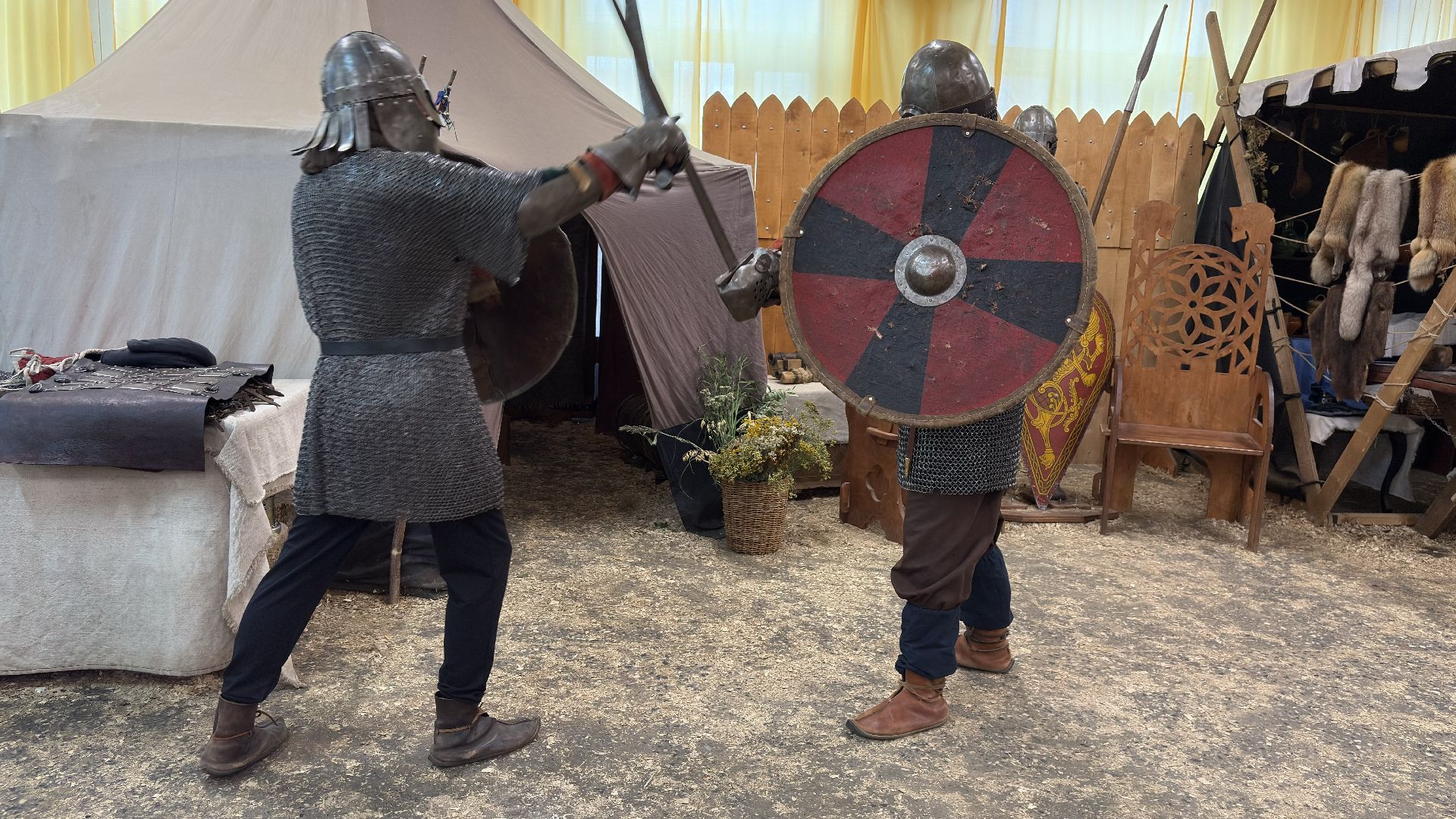 После спектакля начинается свободная часть. По двору можно гулять и выбирать занятия по настроению. Одни идут на ристалище — безопасные бои с мягким оружием, которые больше похожи на подвижную игру, чем на спорт. Другие пробуют себя в ремёслах: лепят глиняные сувениры с узорами, делают краски из паприки, куркумы или цикория, пишут гусиным пером на восковых дощечках. Есть и квесты, которые показывают, как бытовые вещи Средневековья связаны с привычными предметами сегодняшнего дня.