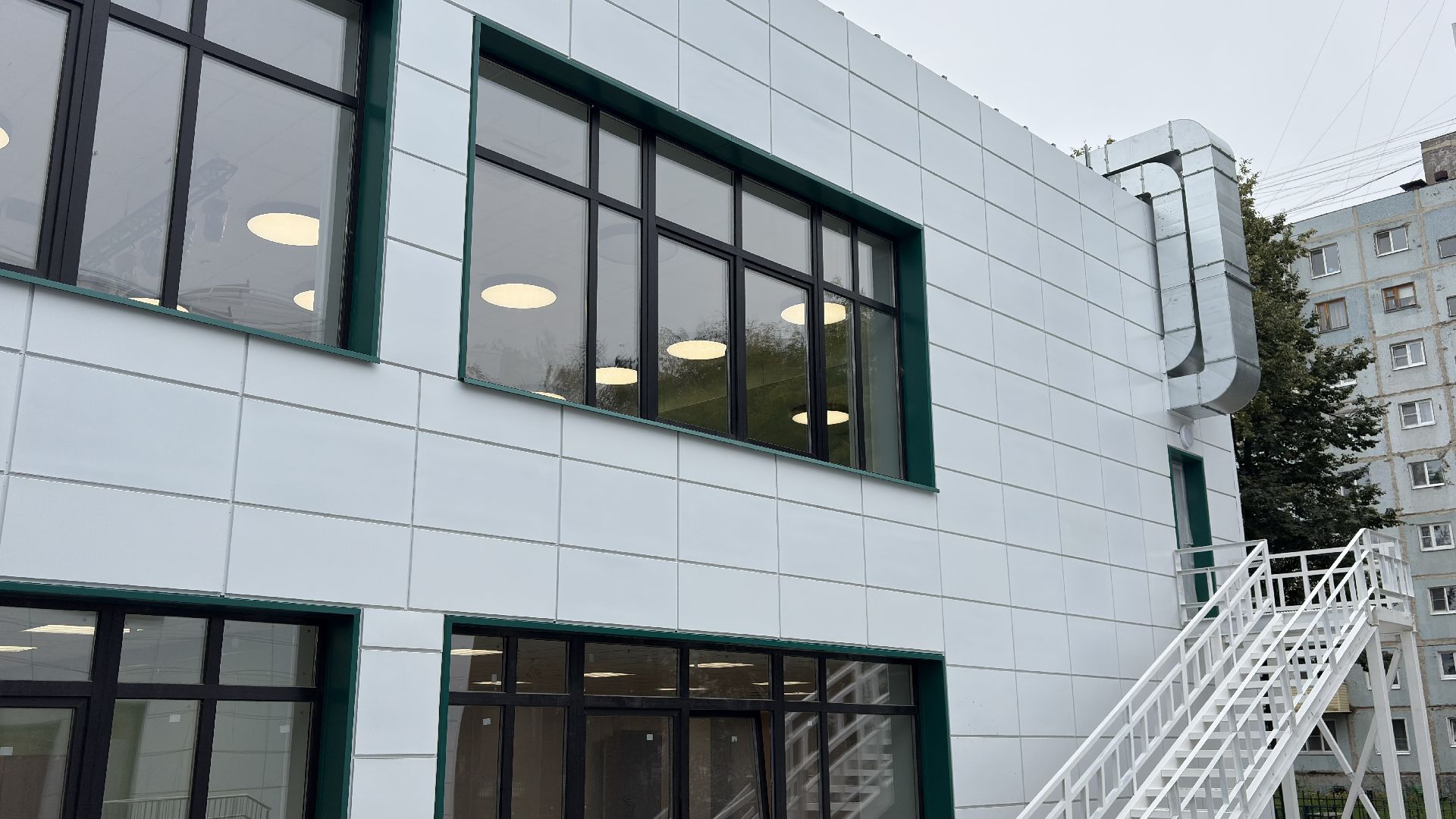 Учебное заведение готово принять 1397 детей. Основной корпус полностью отделан, в кабинетах уже расставлена новая мебель и установлены современные доски с встроенными экранами. Пищеблок полностью оснащён оборудованием, на входе на территорию школы появились скамейки и флагштоки. Внутри и снаружи уже работает система видеонаблюдения и серверная комната.