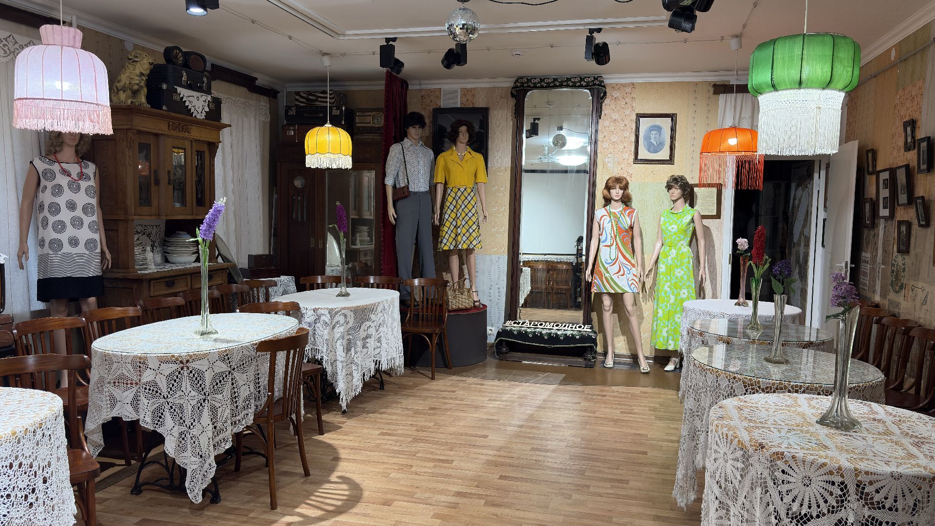 Сейчас в «Старомодном» работает выставка «Летний вкус моды», посвящённая образам с 1930-х по 1970-е годы. Это время, когда в стране менялся уклад жизни, и мода становилась частью повседневности, а желание одеваться красиво перестало считаться прихотью. На выставке можно увидеть лёгкие летние платья, костюмы, рубашки и аксессуары, каждый предмет хранит историю отдельной семьи, но вместе они складываются в живую хронику целой эпохи. Атмосферу дополняют предметы интерьера, благодаря которым гости словно оказываются внутри старого альбома или фильма.