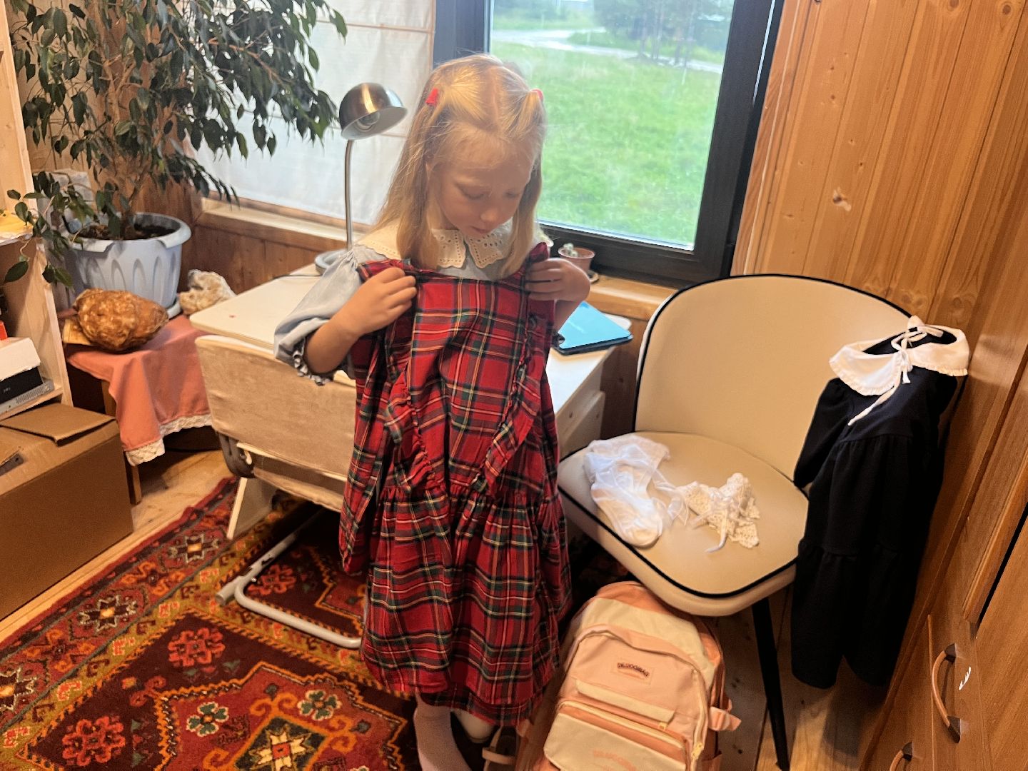Первоклассница из многодетной семьи в деревне Васютино под Егорьевском готовится к началу учебного года