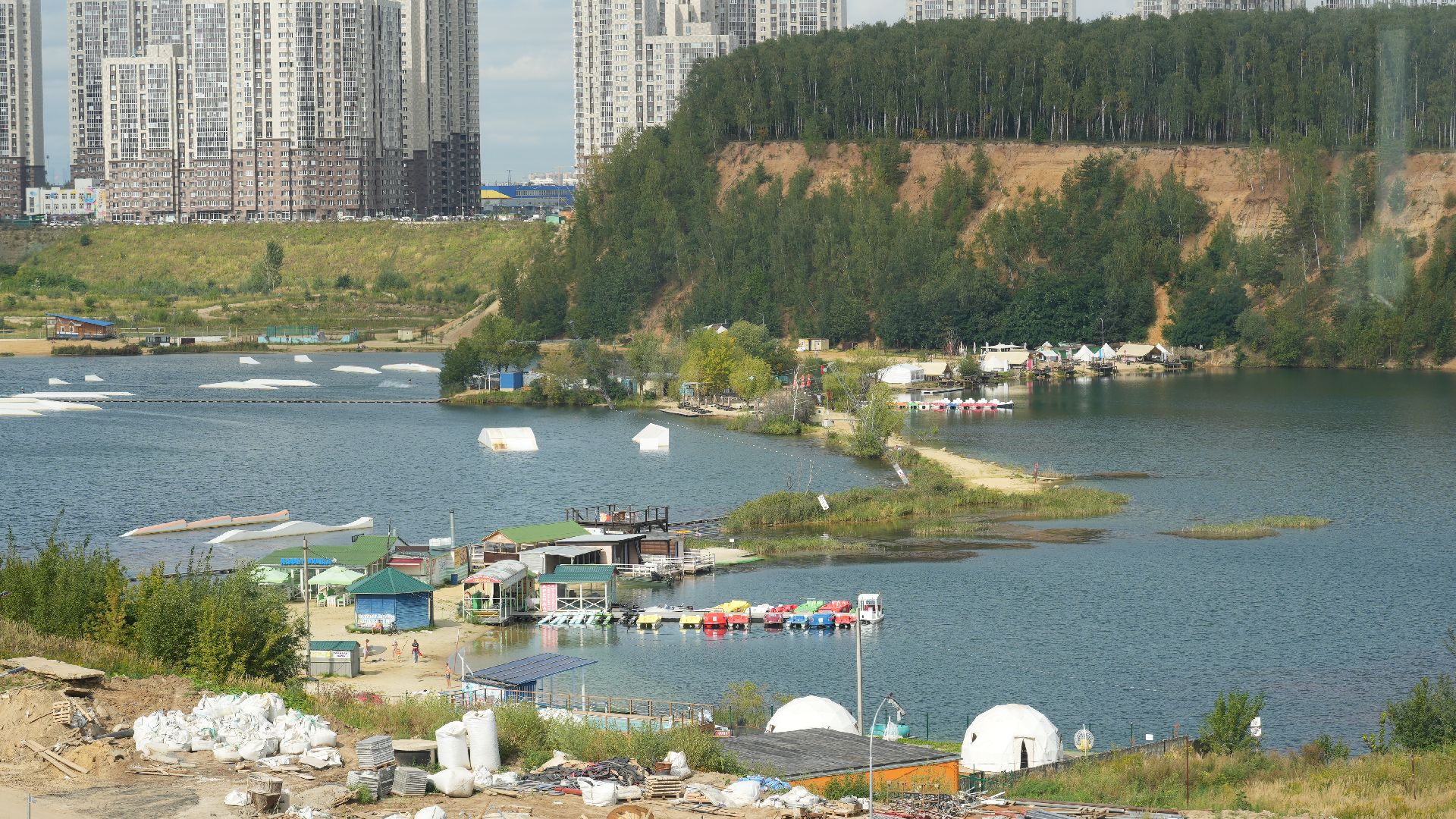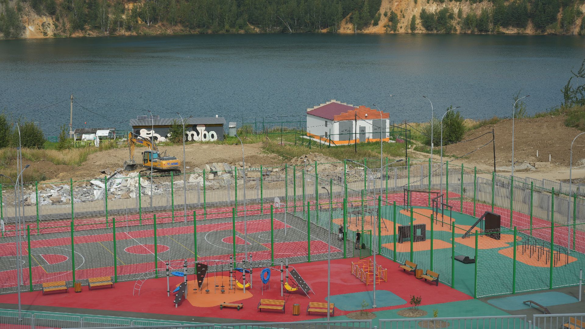 Площадь нового здания составляет 42000 кв. м, корпус ступенями спускается к городской зоне отдыха — из его окон открывается вид на лес и водную гладь карьера. За карьером раскинулся густой лес, высокие деревья которого создают неповторимый природный ансамбль. Весной лес одевается в свежую зелень, летом дарит тень и прохладу, осенью поражает воображение буйством красок, а зимой предстаёт в своём строгом, величественном убранстве. Поэтому найти вдохновение, например, на уроке литературы здесь не составит труда.
