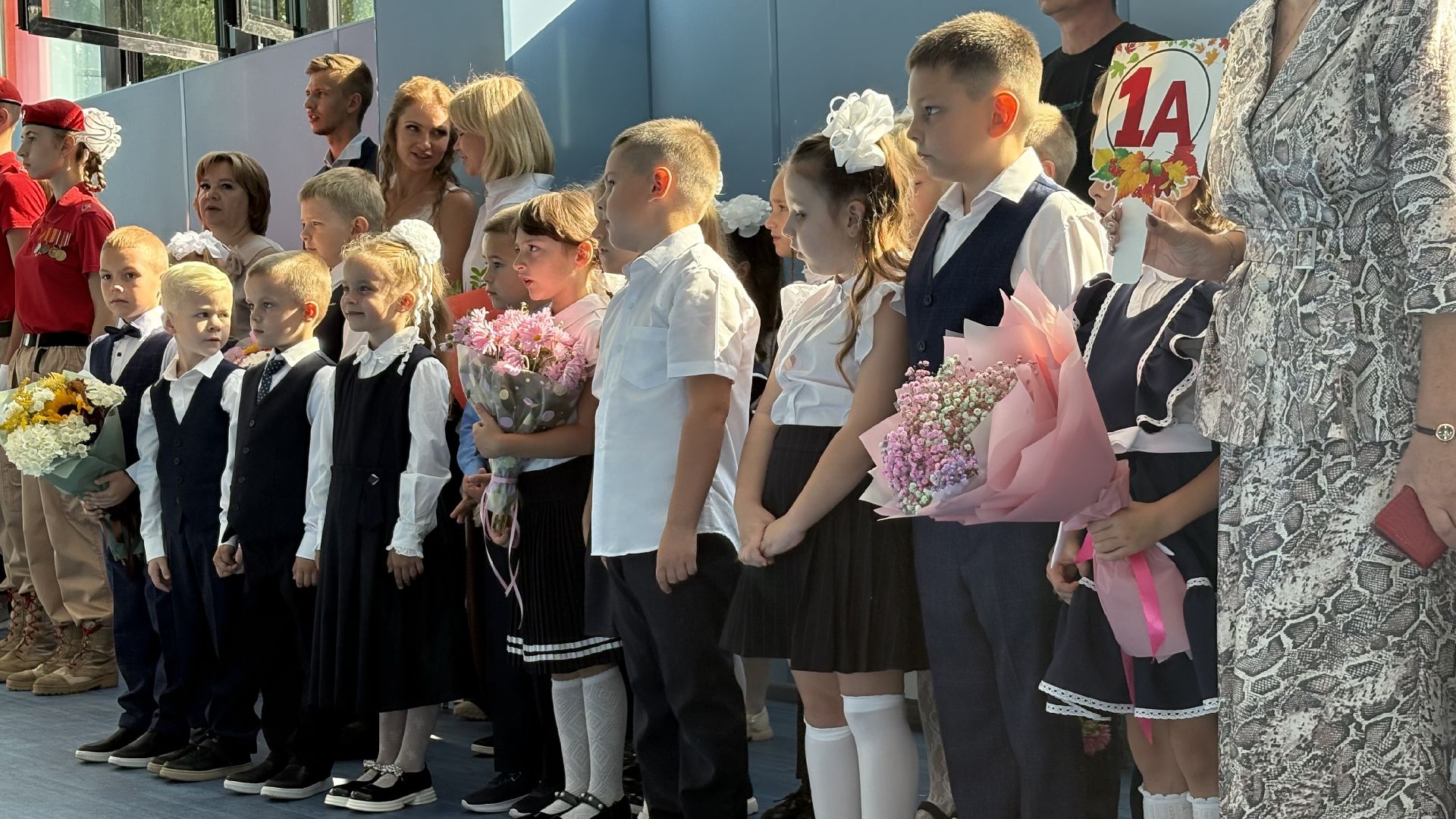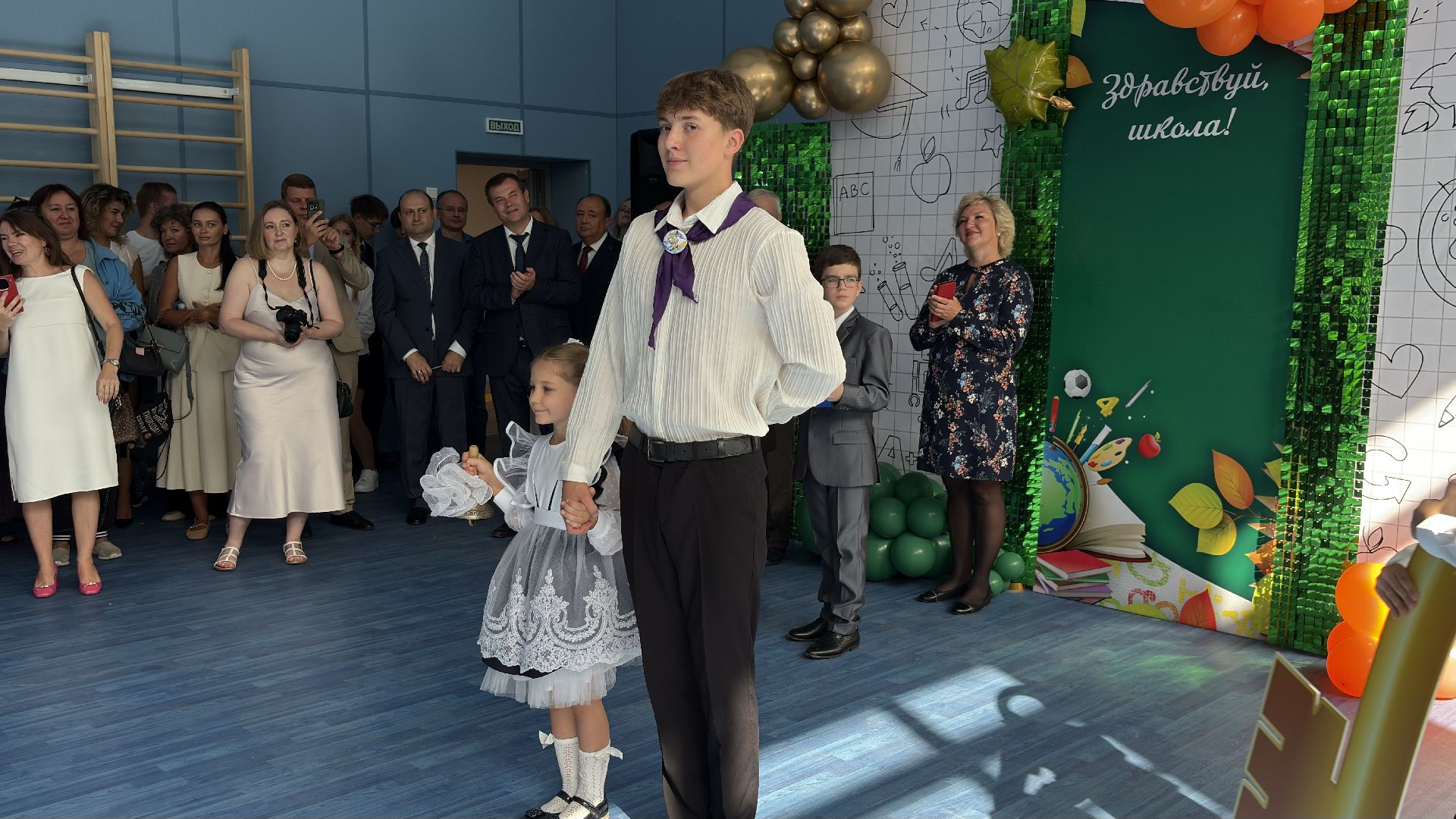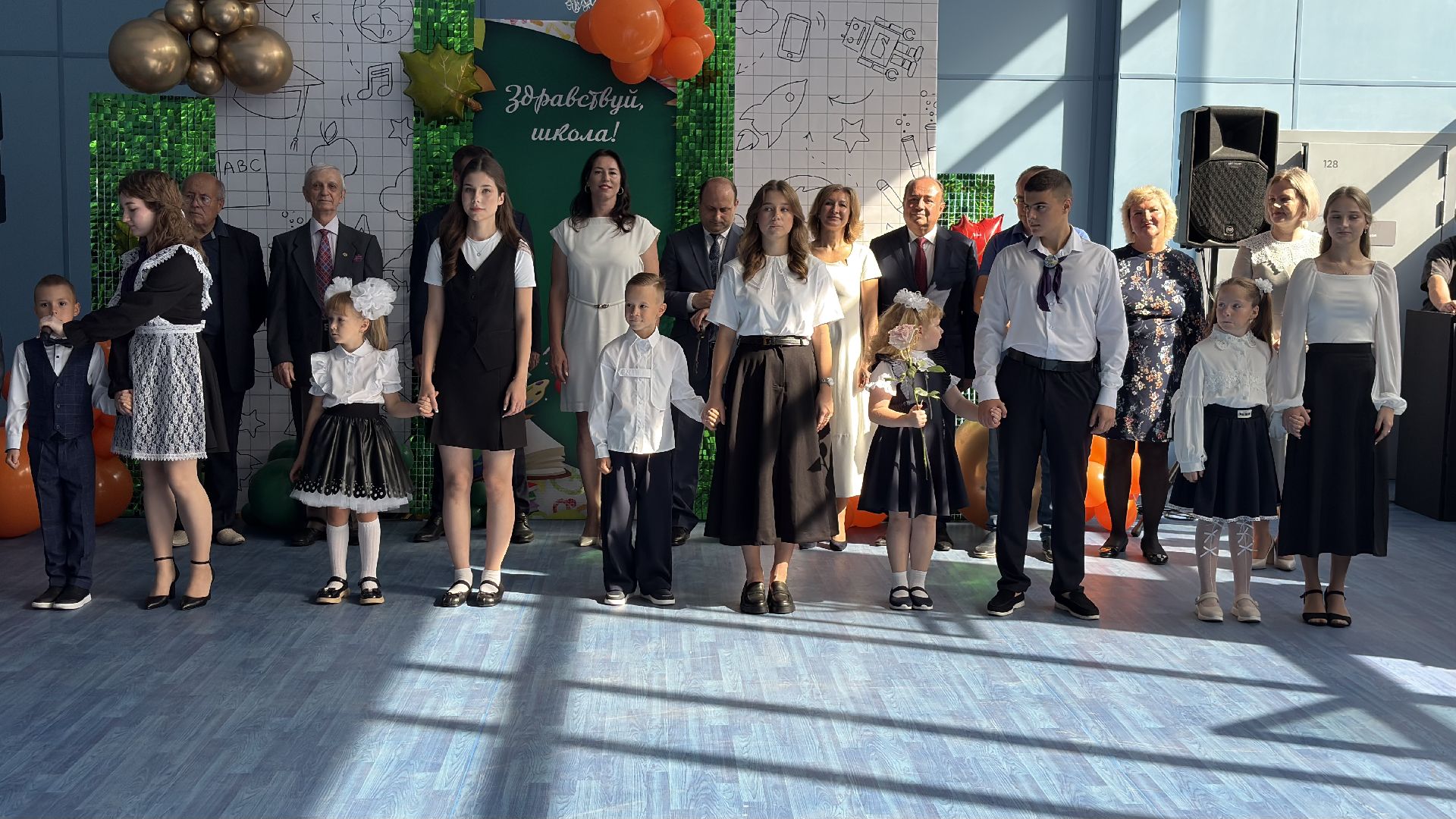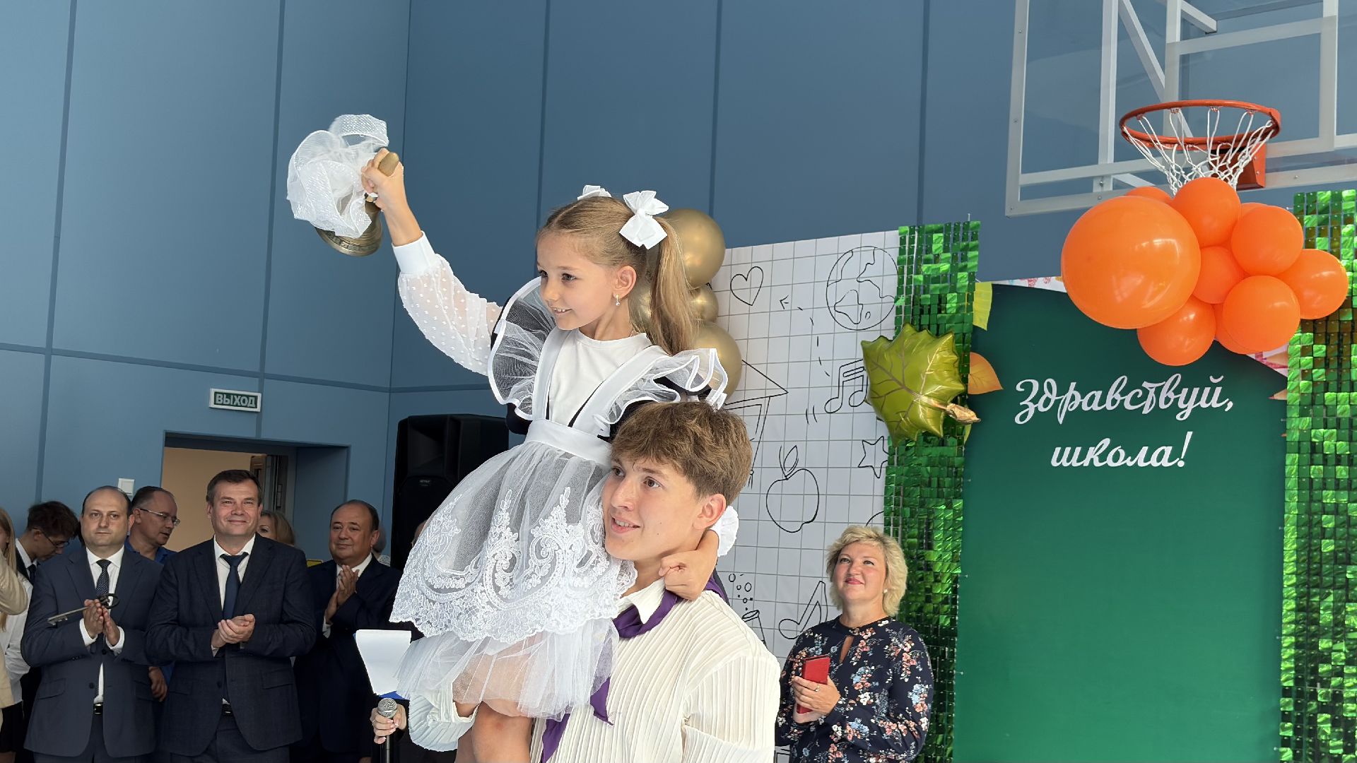 Торжественная линейка прошла прямо в спортивном зале. Пять первых и три одиннадцатых класса, почётные гости, учителя и родители собрались, чтобы разделить долгожданное событие. Символичным моментом стала сценка, где малыши в касках строителей «возводили» школу, а потом торжественно вручили ключ директору и ученикам. Завершили праздник трогательный танец первоклассников и выпускников и, конечно, традиционный первый звонок, когда одиннадцатиклассник пронёс на руках маленькую школьницу с колокольчиком.