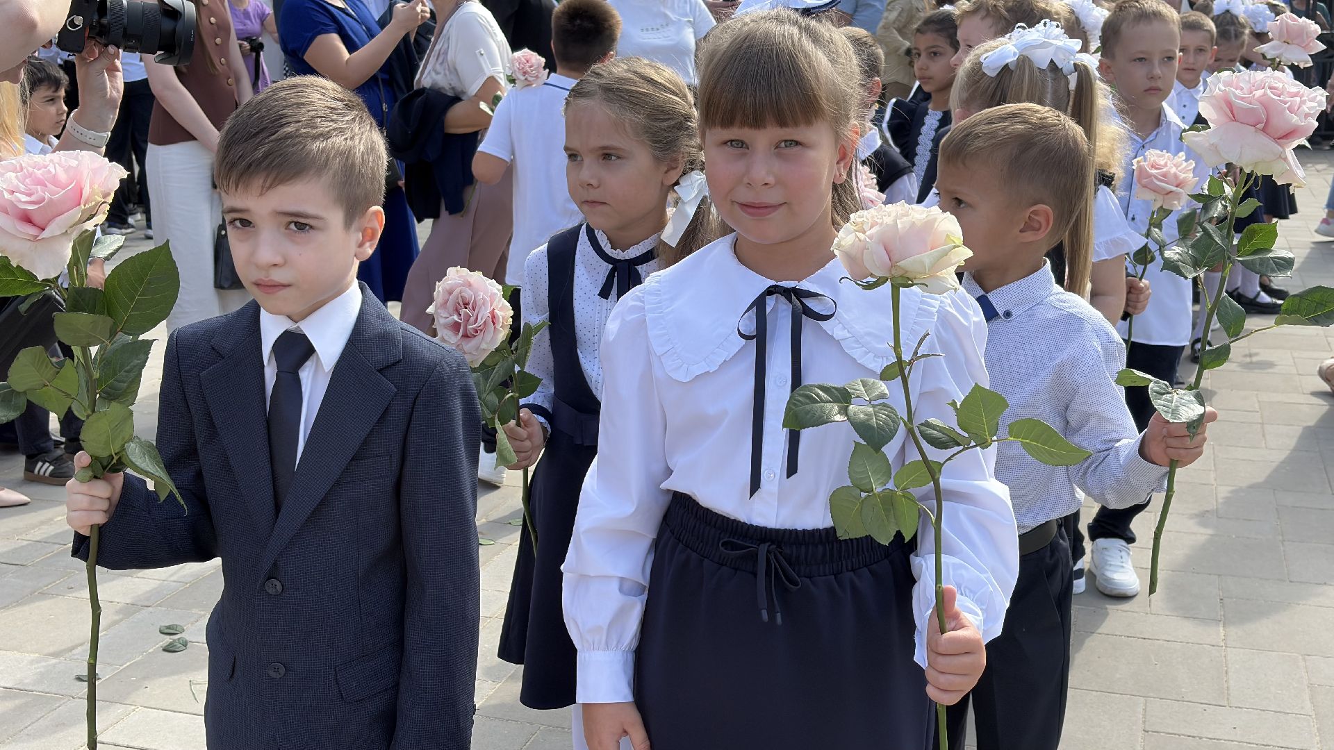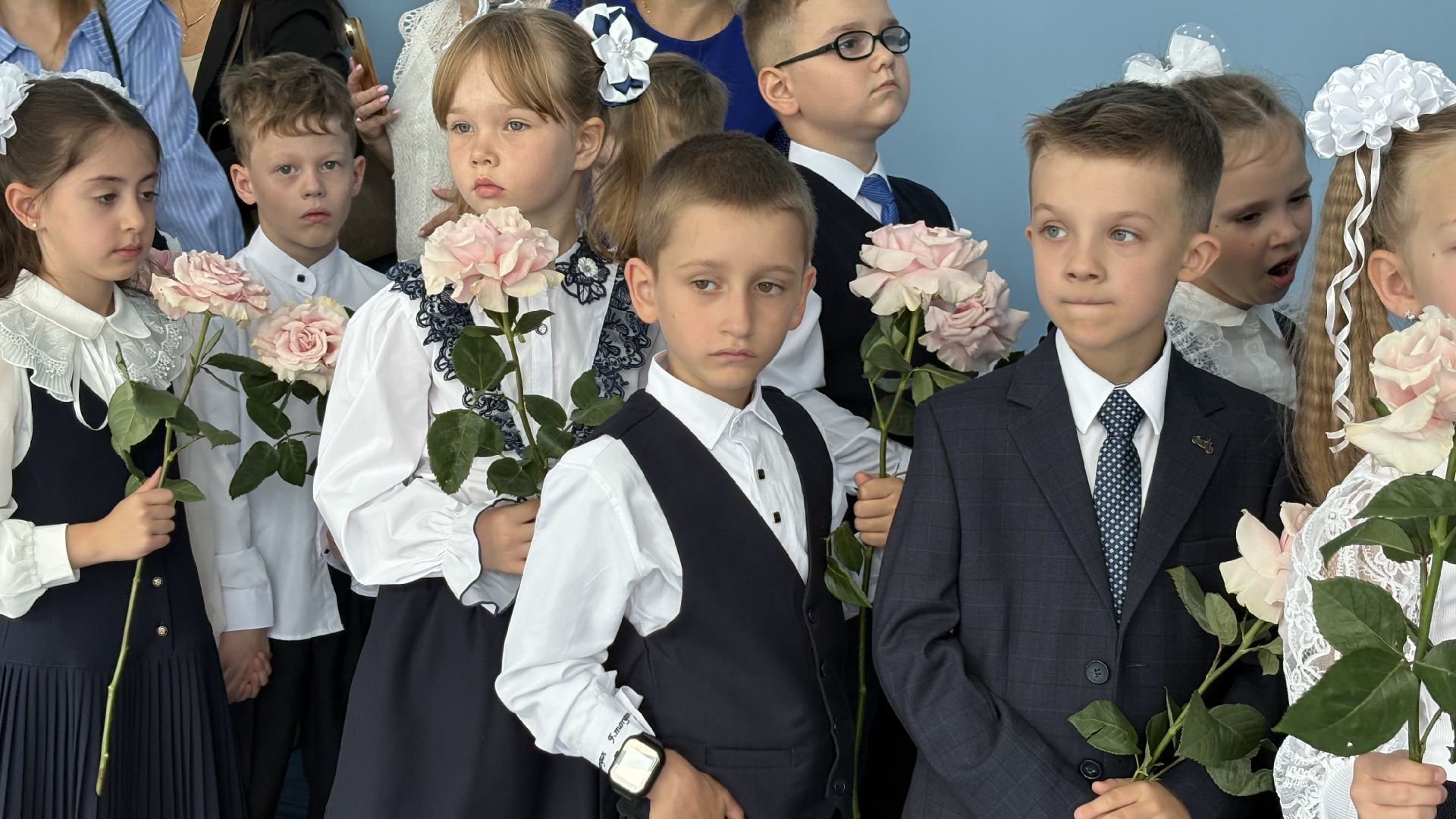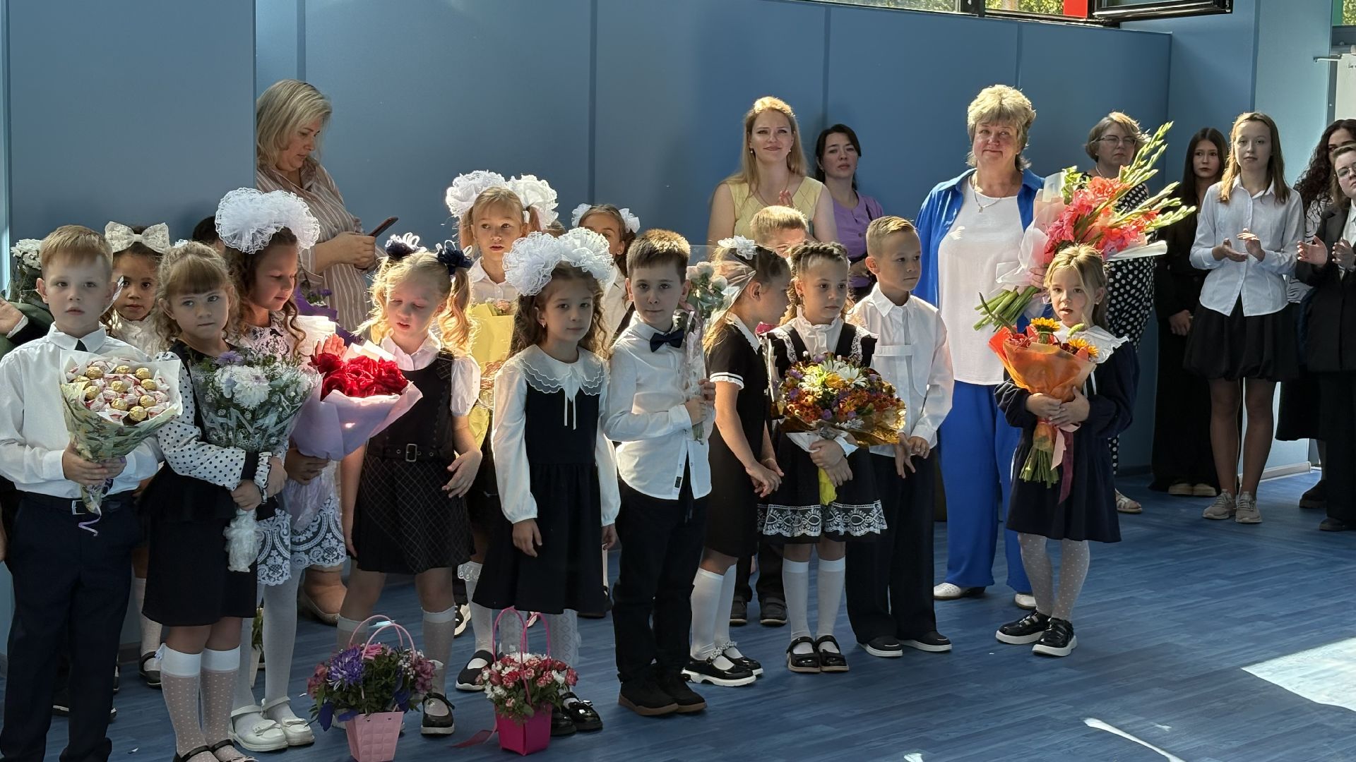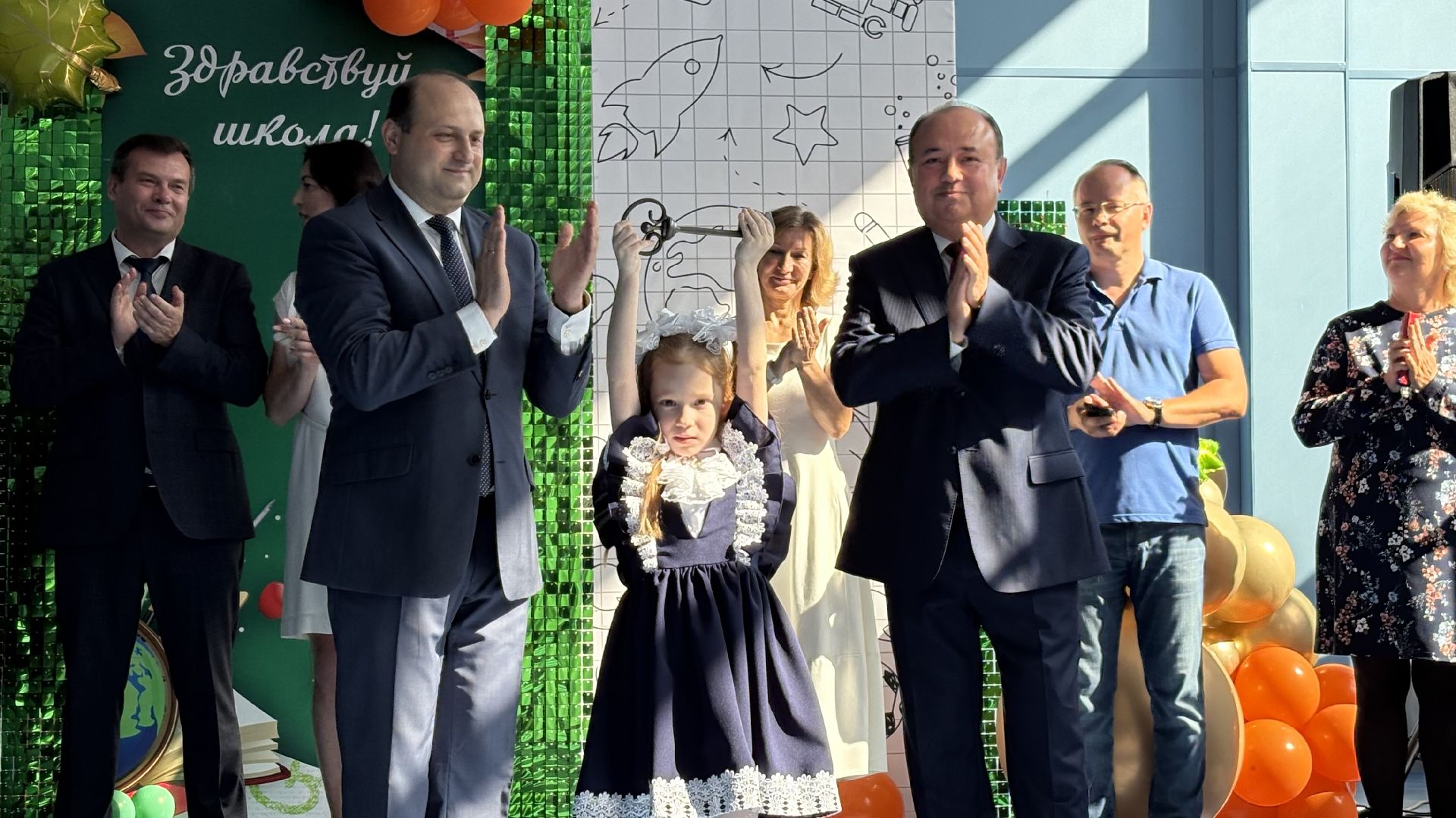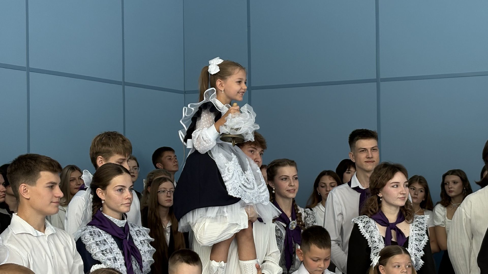 Торжественная линейка прошла прямо в спортивном зале. Пять первых и три одиннадцатых класса, почётные гости, учителя и родители собрались, чтобы разделить долгожданное событие. Символичным моментом стала сценка, где малыши в касках строителей «возводили» школу, а потом торжественно вручили ключ директору и ученикам. Завершили праздник трогательный танец первоклассников и выпускников и, конечно, традиционный первый звонок, когда одиннадцатиклассник пронёс на руках маленькую школьницу с колокольчиком.