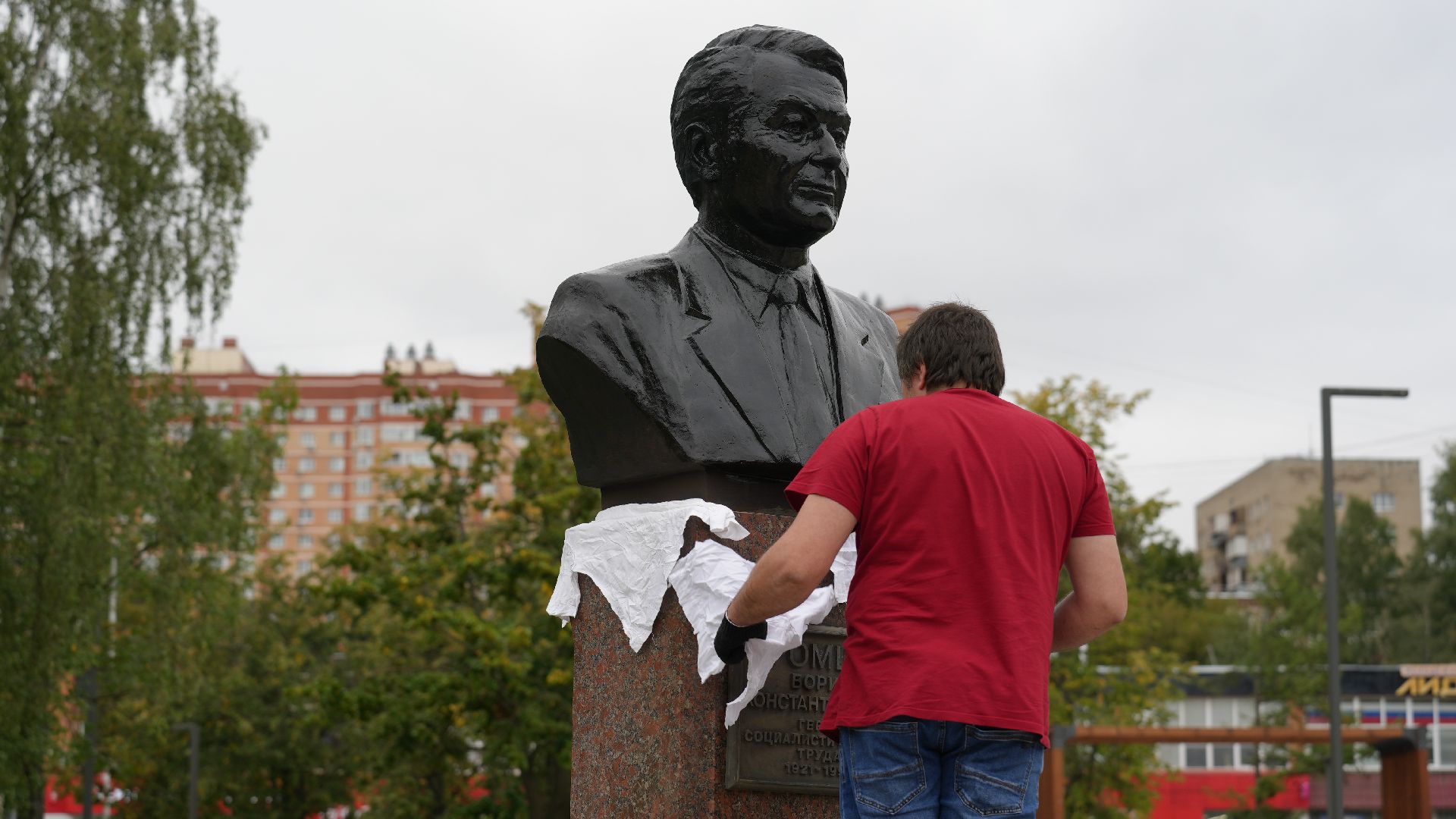 В Дзержинском реставрируют бюст Борису Громцеву в одноимённом городском сквере