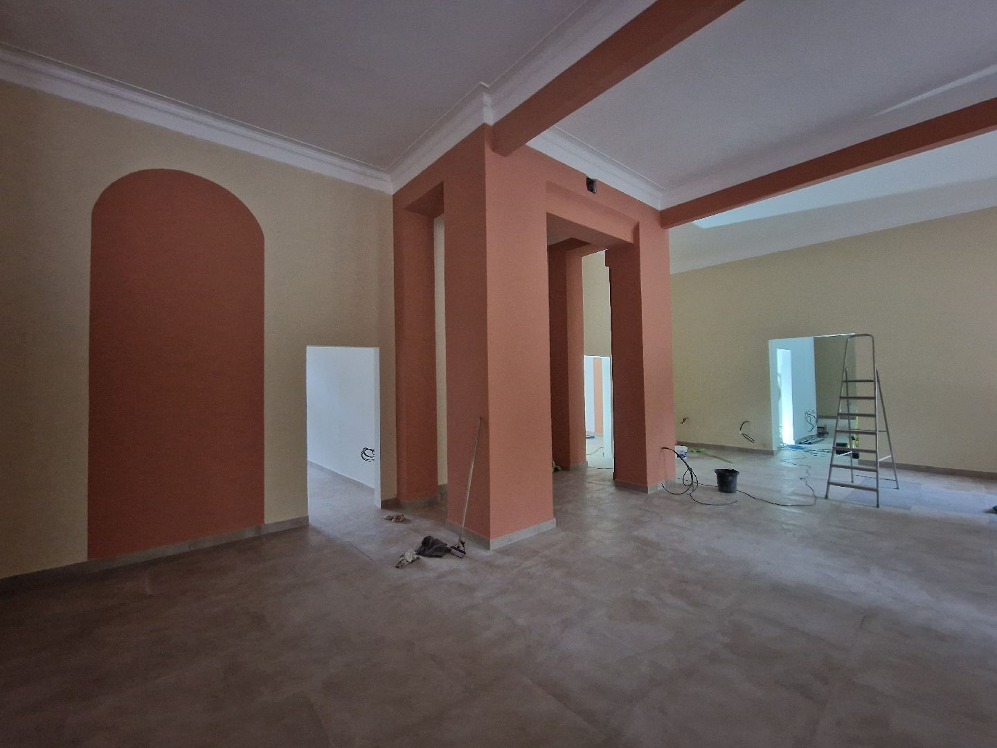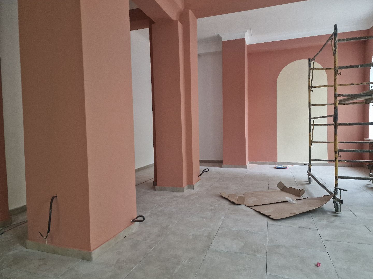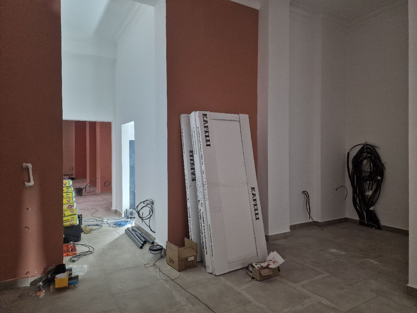 Строители завершили основные работы: уложили новую плитку на полу, оштукатурили и покрасили стены. Сейчас идёт установка межкомнатных дверей, в ближайшее время повесят люстры и начнут монтаж новой современной мебели.
