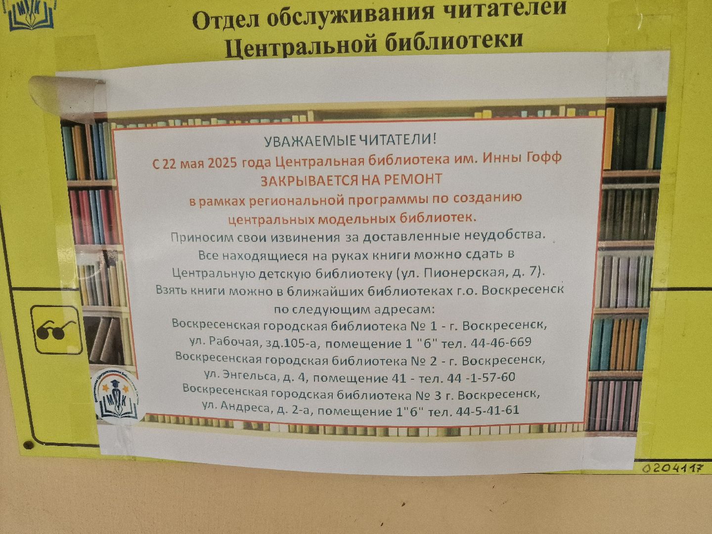 Центральную библиотеку Воскресенска оформят в цветах из стихотворения Инны Гофф