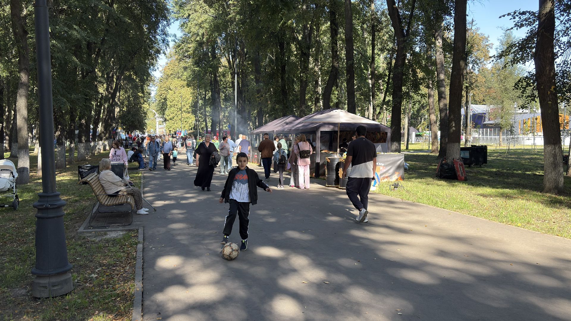 Для гостей работают точки питания: запах шашлыка, сладостей и горячего кофе только добавляет настроения.