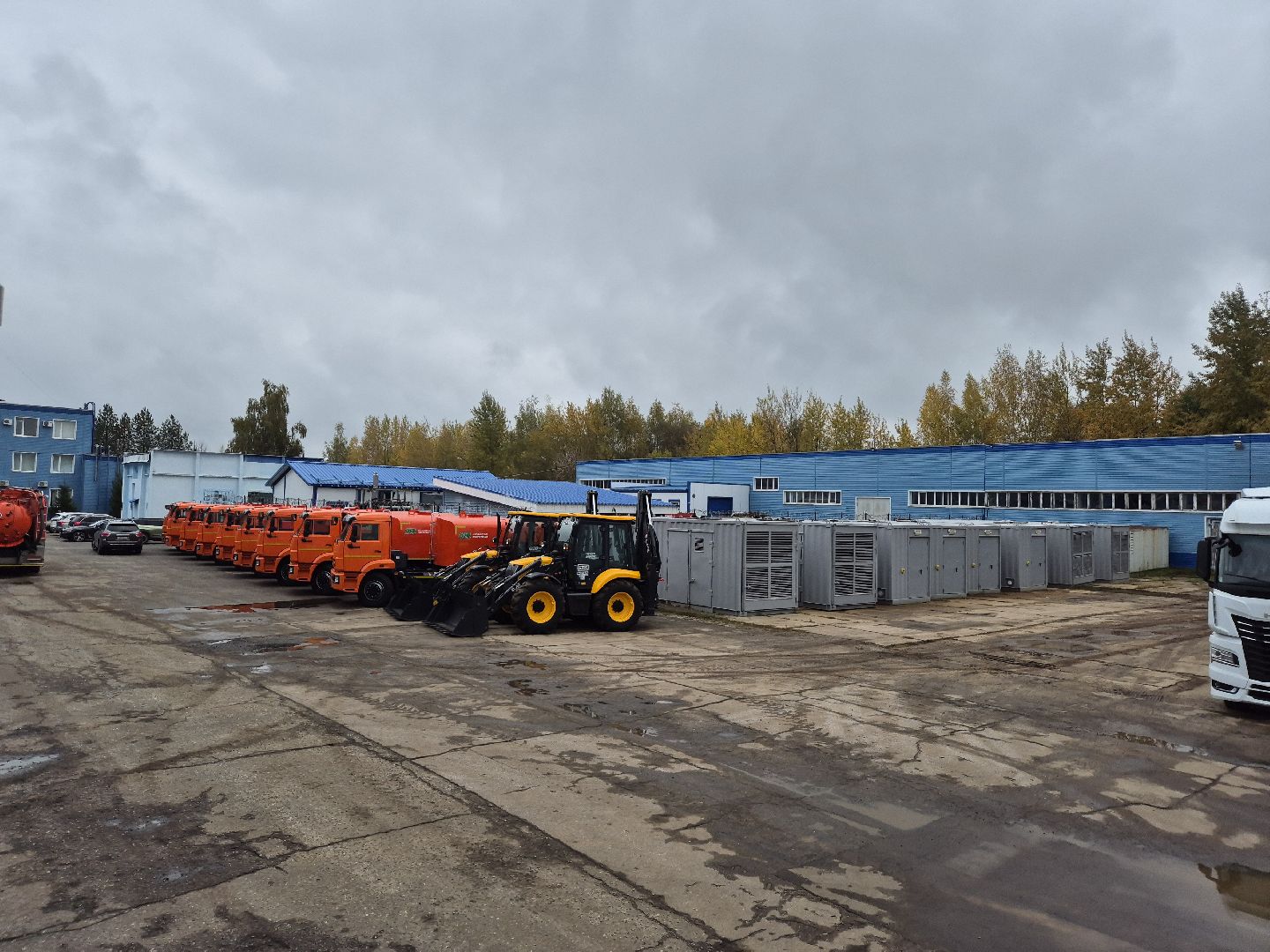 На производственно-складском комплексе расположен гаражный комплекс и мастерские. До поступления новых машин в автопарке числилась 421 единица техники.