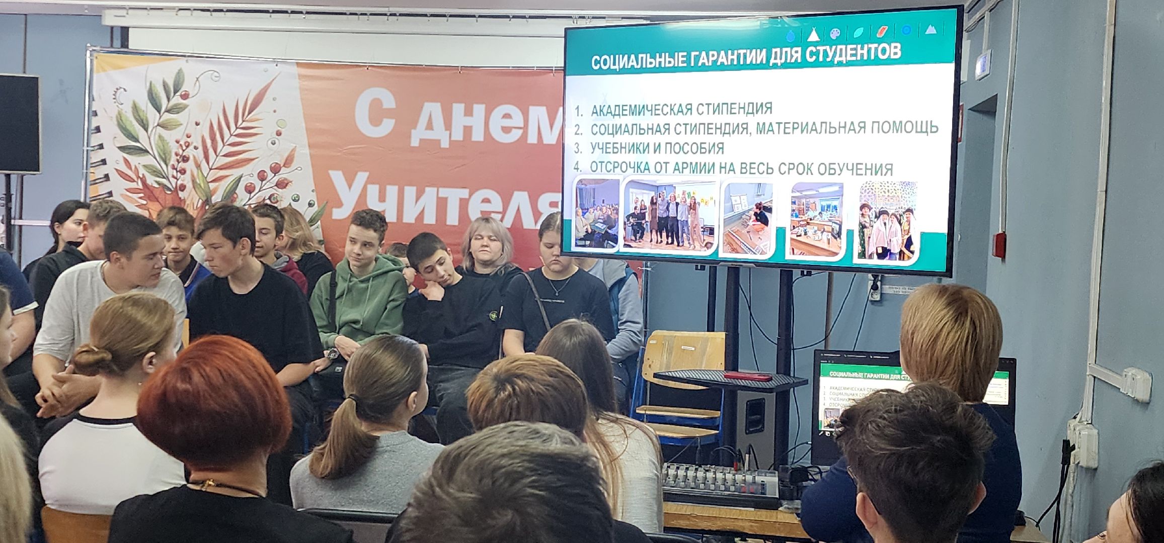 Ребятам показали презентацию, на которой наглядно объяснили, чего ожидать при поступлении в 2026 году. Открыть поступление планируют как на бюджет, так и на платное отделение. Детям предоставят академическую стипендию, учебники и пособия, а мальчики получат отсрочку от армии на срок обучения.