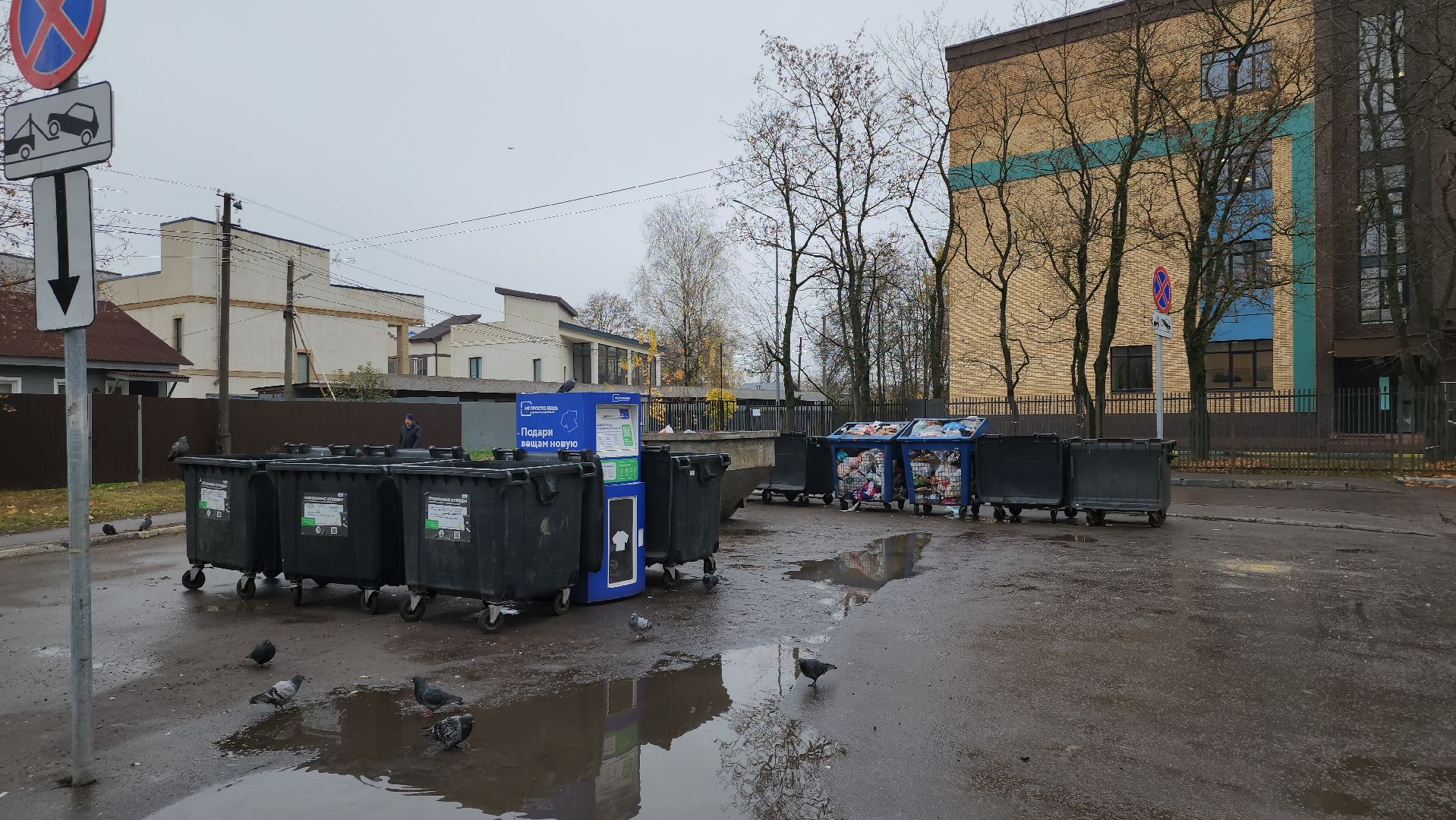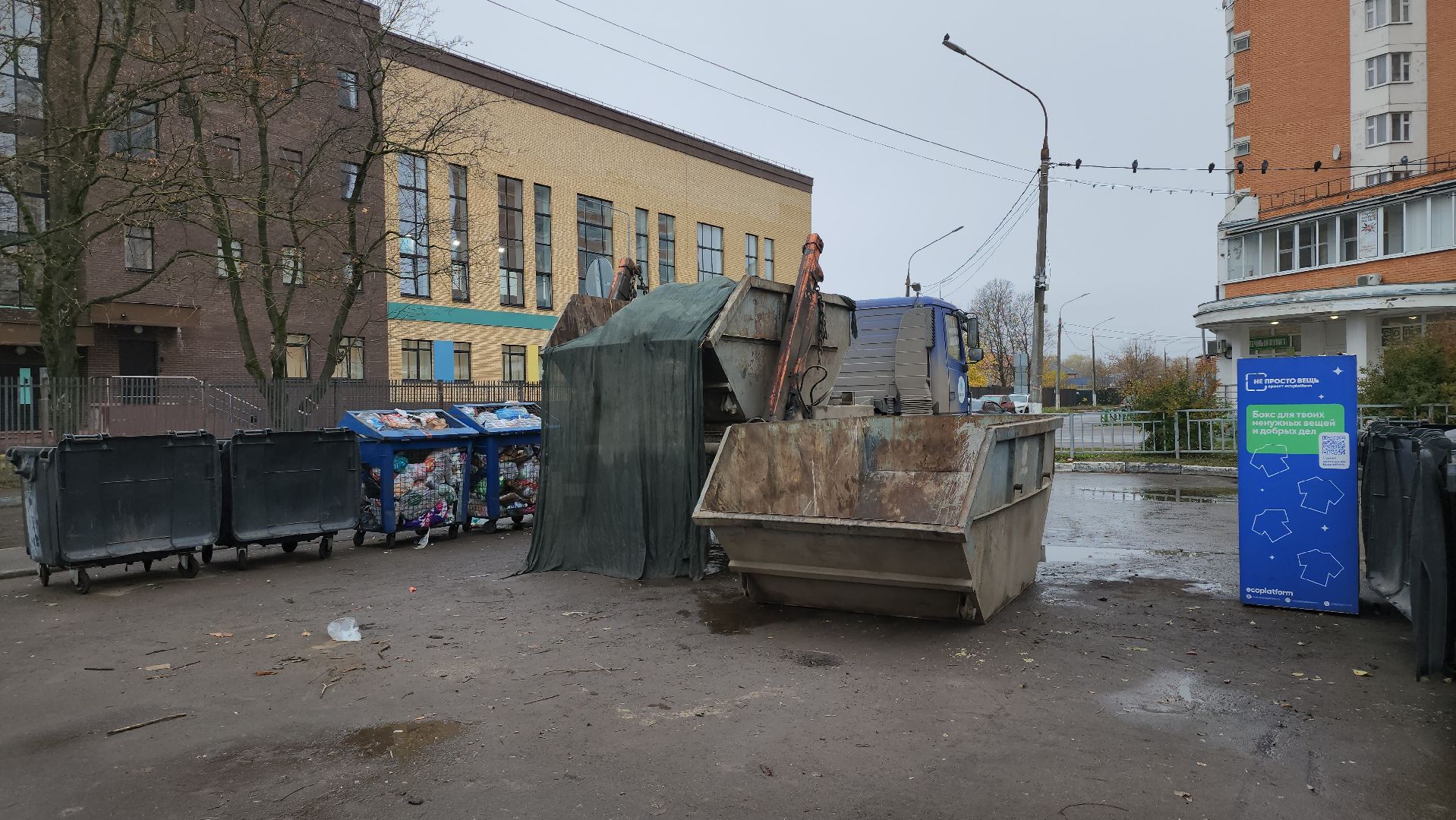 Рабочие уже демонтировали старый навес и привезли новые баки, в том числе для сбора сухих перерабатываемых отходов. Также здесь установили специальный бокс для сбора старых вещей. Вся одежда, которую оставляют местные жители в нём, будет передана нуждающимся и получит вторую жизнь.