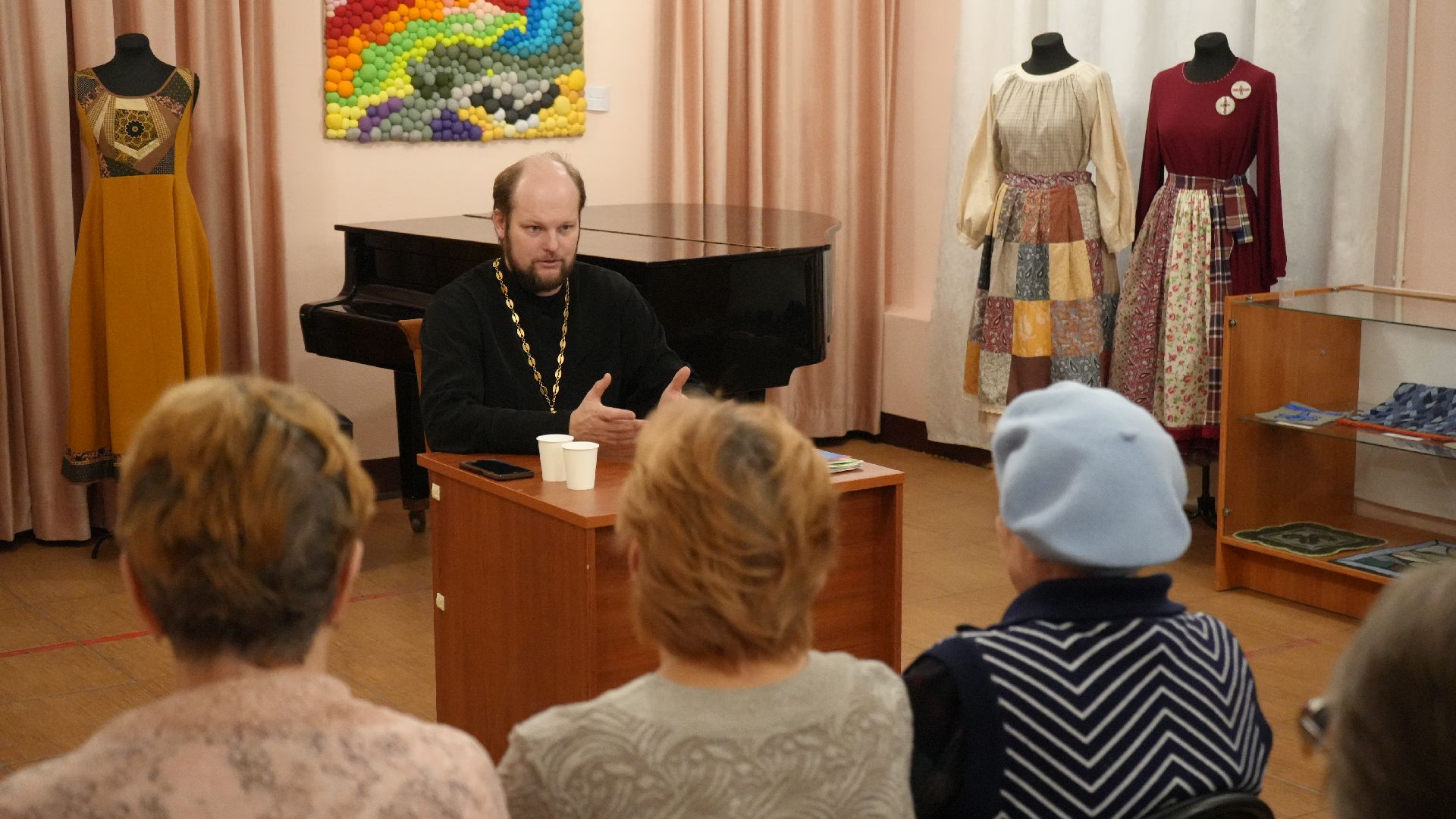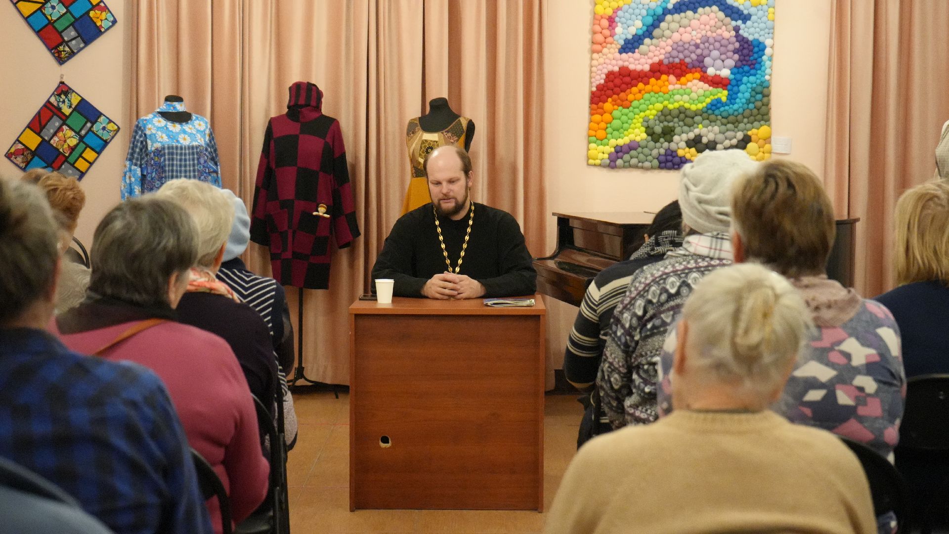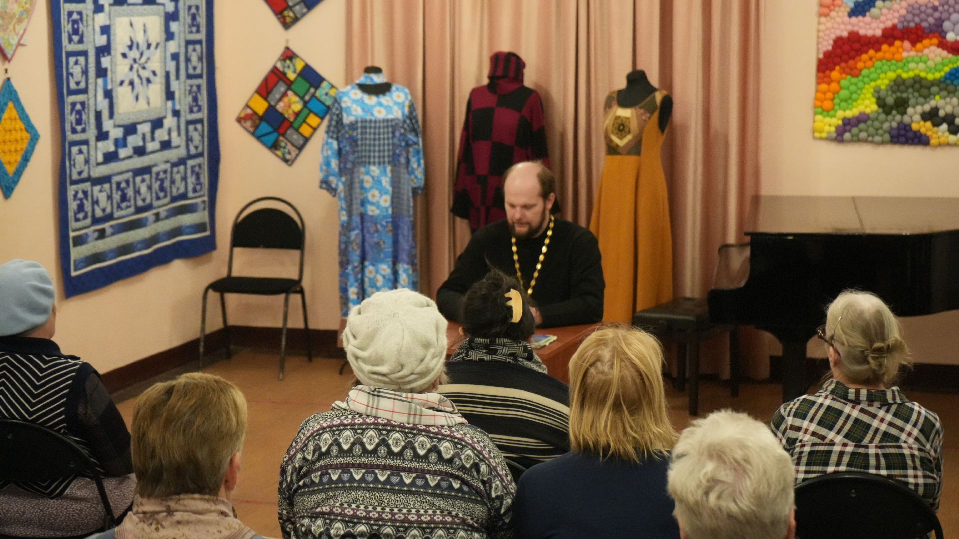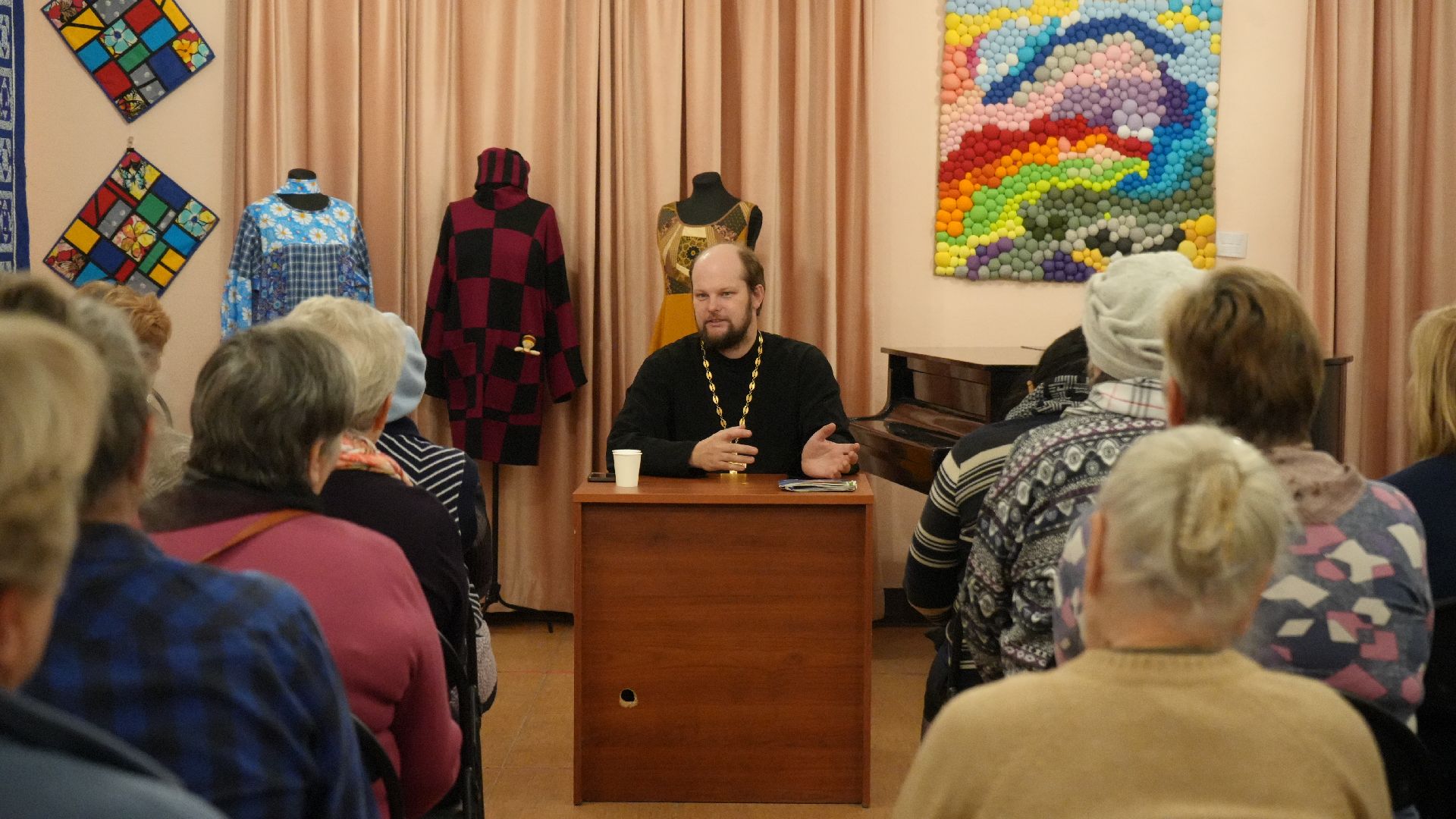 Перед аудиторией — участниками проекта «Активное долголетие» и прихожанами — выступил старший священник храма в честь святителя Макария, митрополита Московского, Сергий Шилов. Священник, который также преподаёт в Николо‑Угрешской духовной семинарии, подробно разобрал ключевые даты церковного календаря и развеял ряд устойчивых заблуждений.