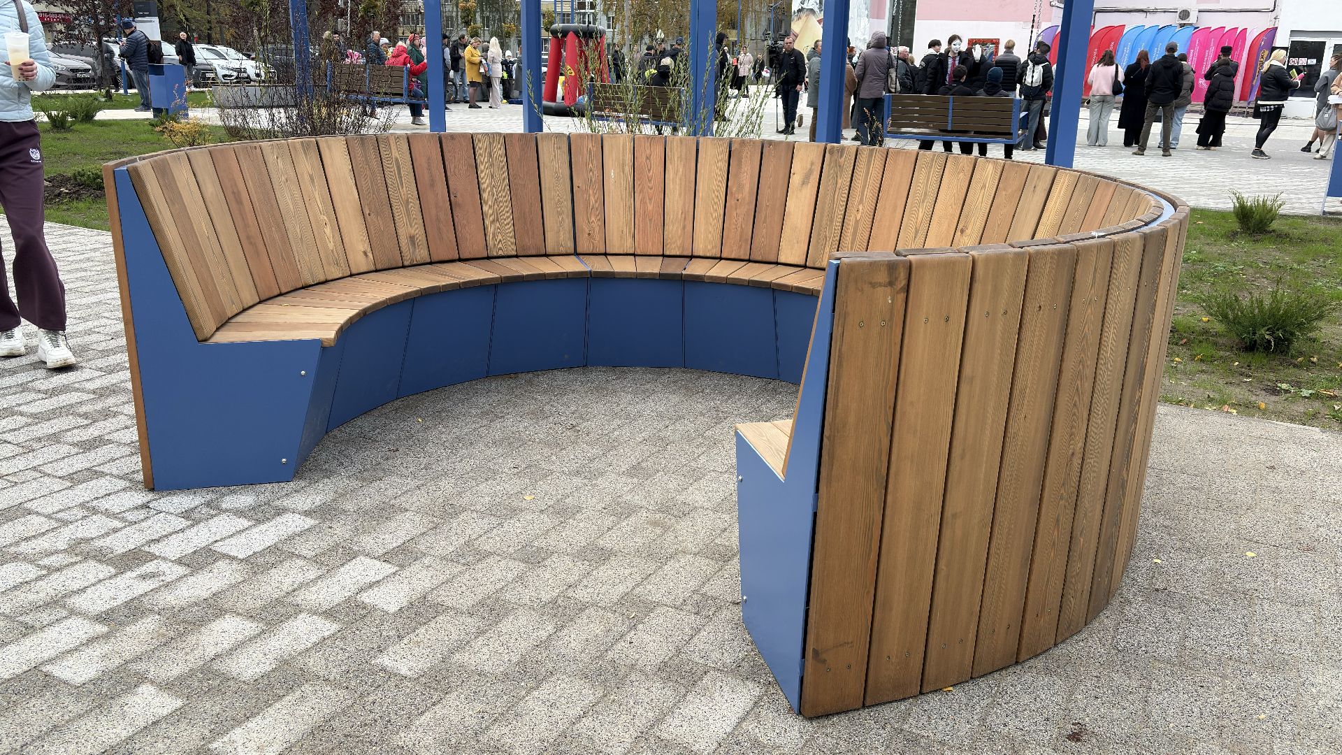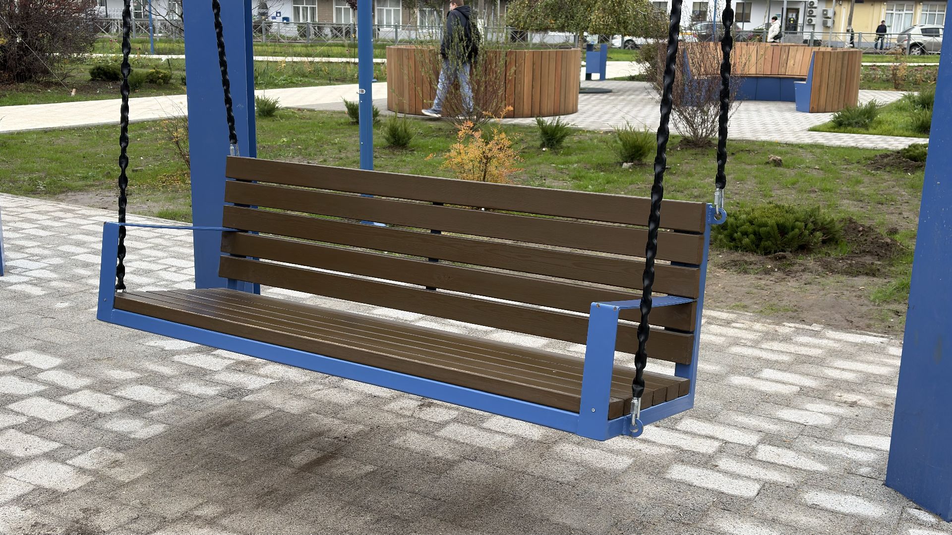 Теперь пространство вокруг центра стало по-настоящему современным. Здесь появились новые пешеходные дорожки, система видеонаблюдения и удобное освещение, установлены лавочки и качели с навесом. Всё продумано для того, чтобы приходить сюда было приятно и днём, и вечером.