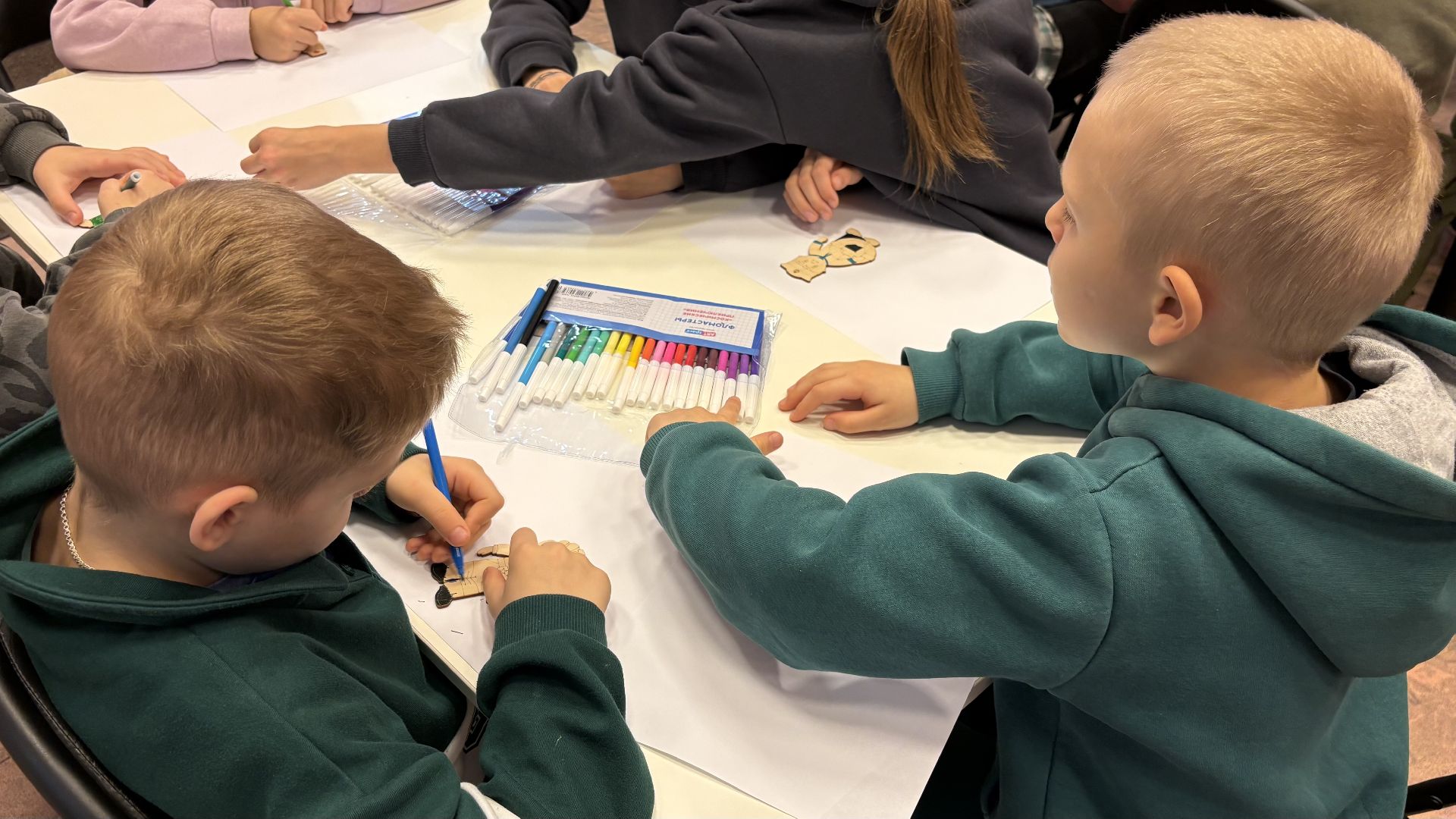 Далее прошёл мастер-класс «Маленькая армия больших героев». Дети раскрашивали деревянных солдатиков и знакомились с военными профессиями. Они узнали тонкости униформы, фуражек и значков танкистов, моряков, лётчиков, военных врачей и других профессий. Ребята с интересом слушали истории о смелости и взаимопомощи, а готовые фигурки стали символом личного вклада каждого участника.