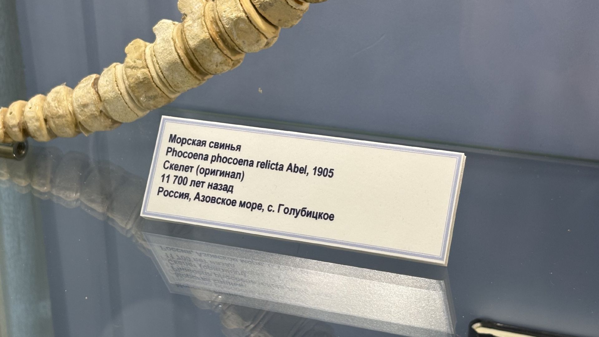 Особое внимание привлекает оригинальный скелет морской свиньи, найденный в станице Голубицкое в Краснодарском крае. Это единственный экземпляр подобного рода, представленный в экспозиции.