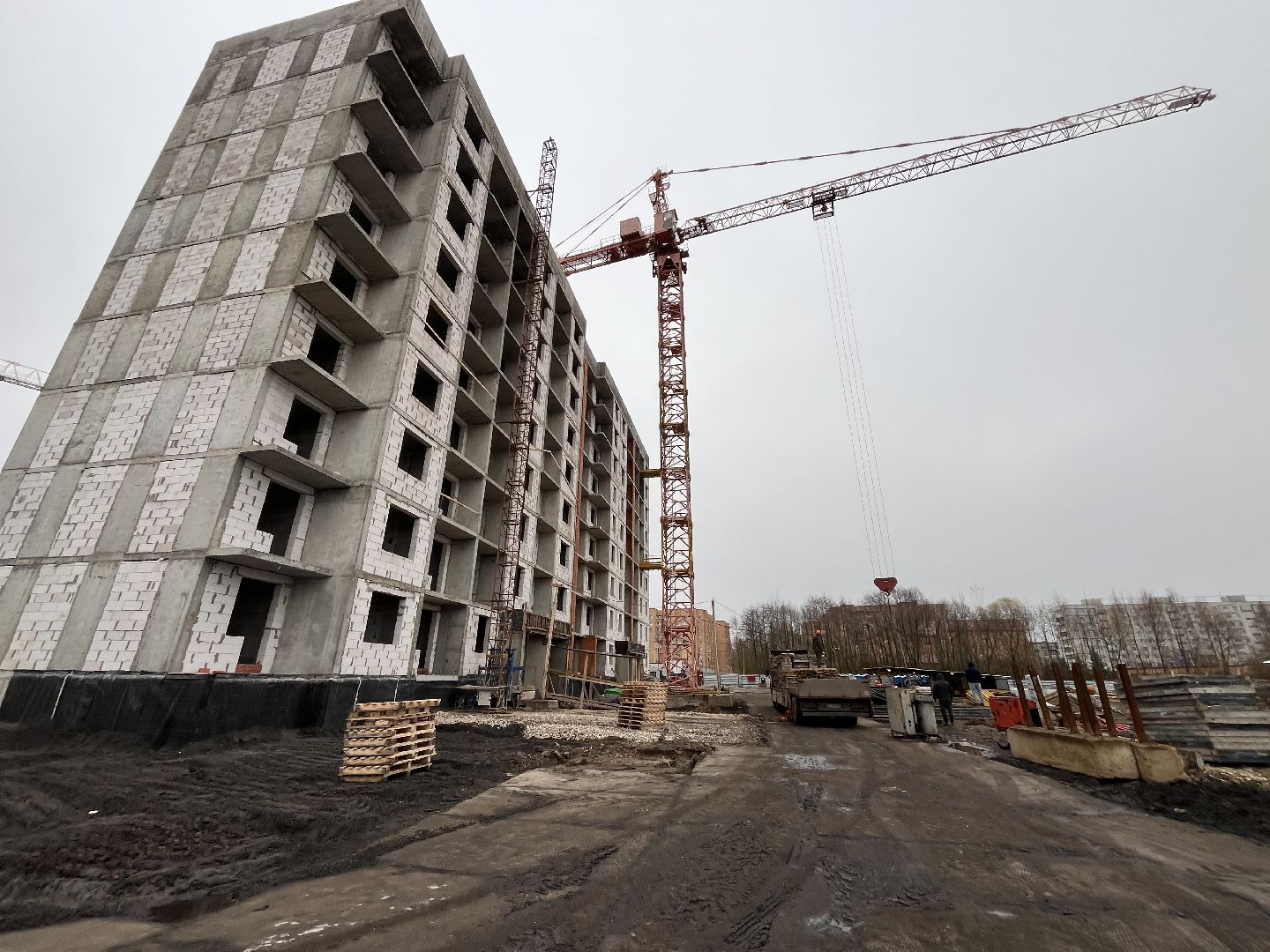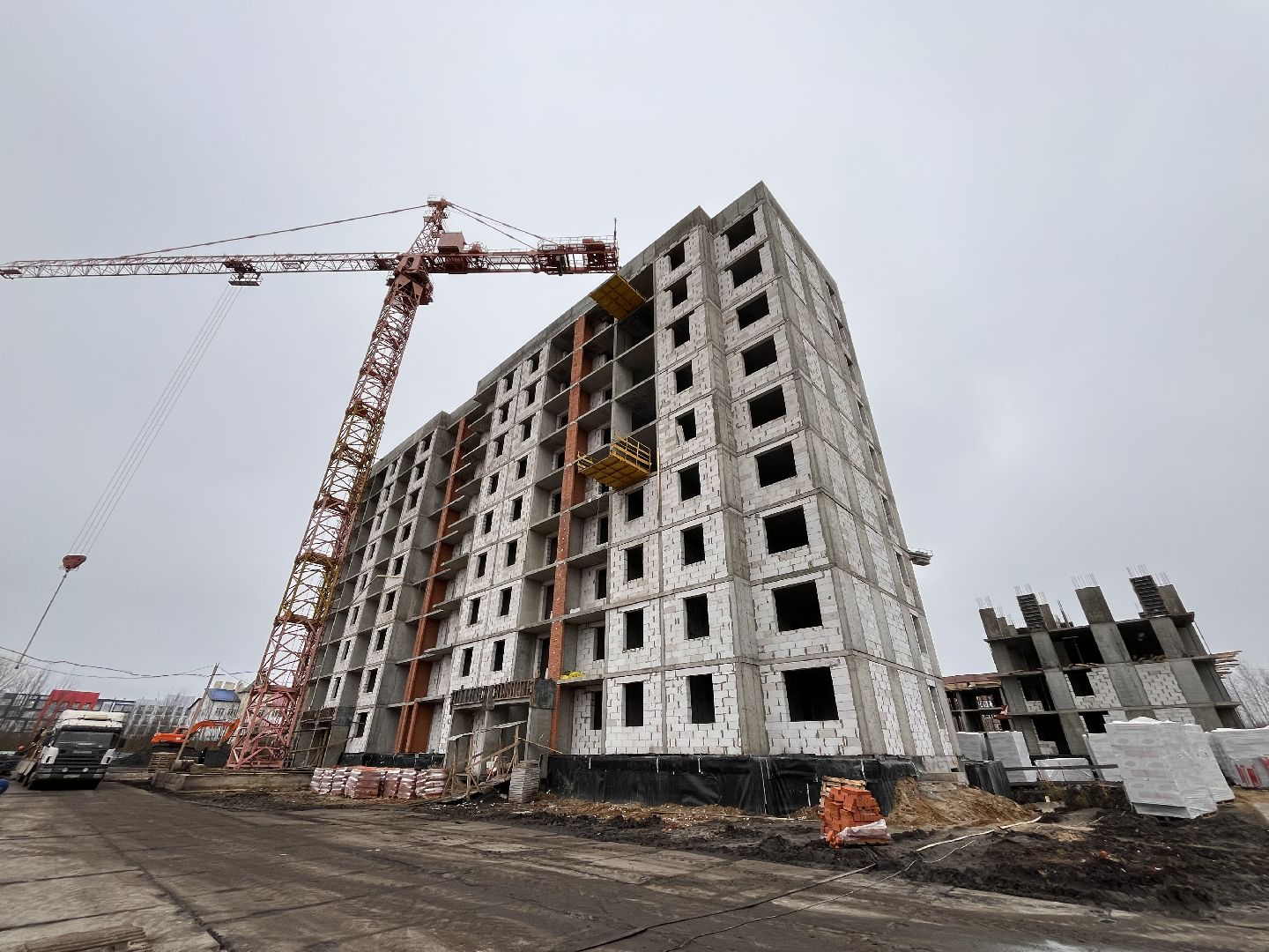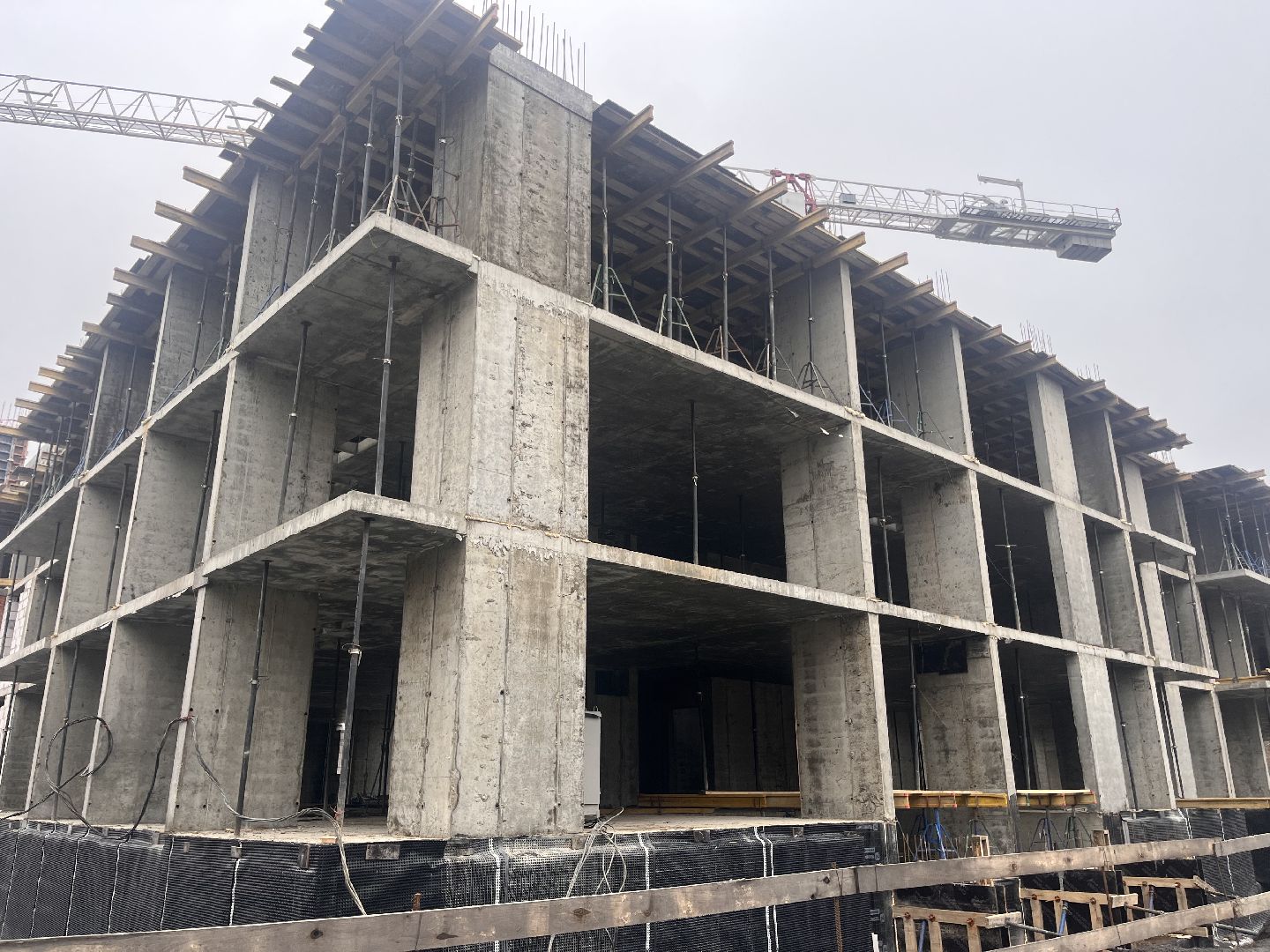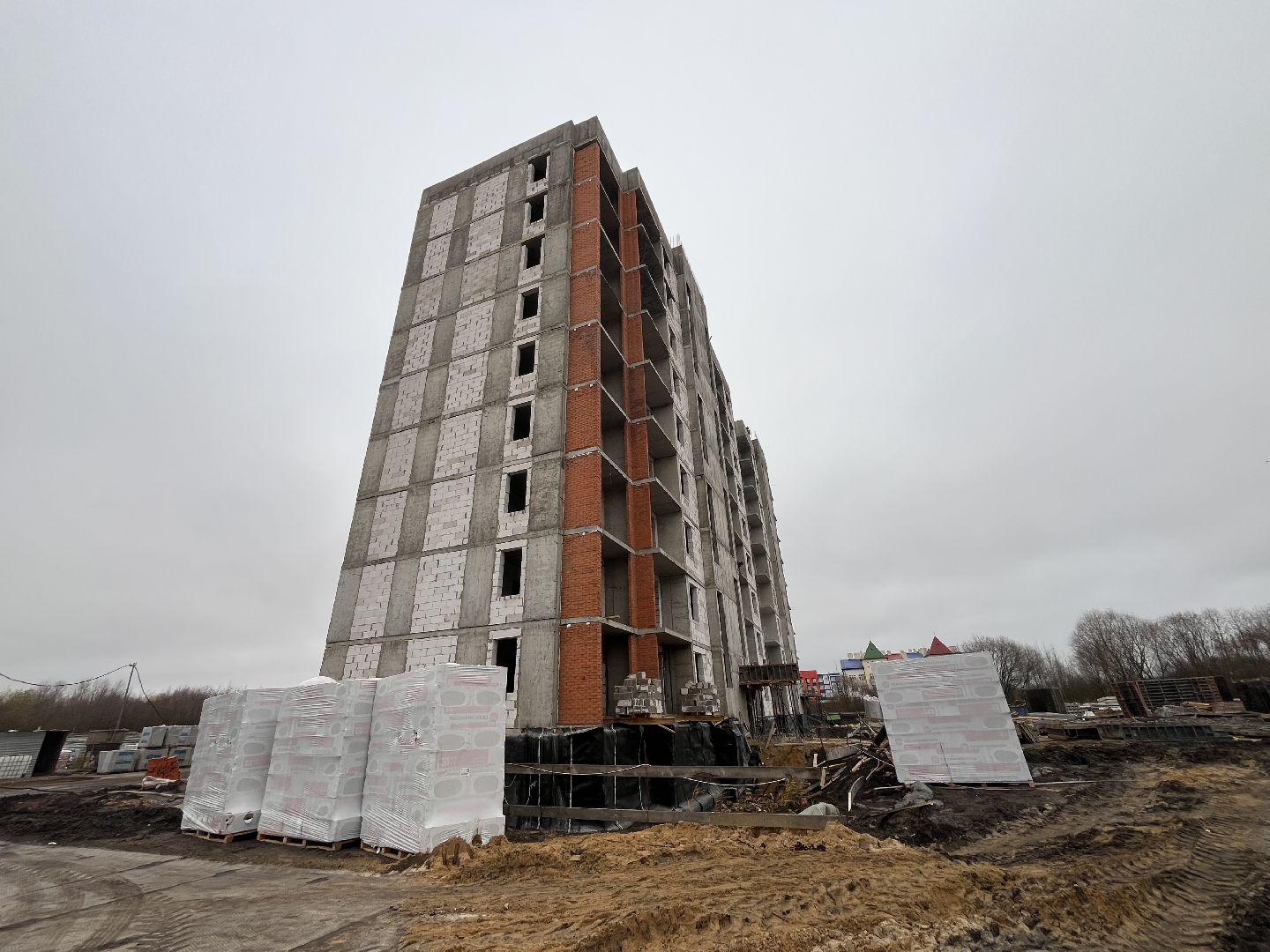 Сейчас строители сосредоточены на первом корпусе: завершают монолитные работы и ведут закрытие теплового контура здания. Уже на следующей неделе планируют приступить к установке окон.