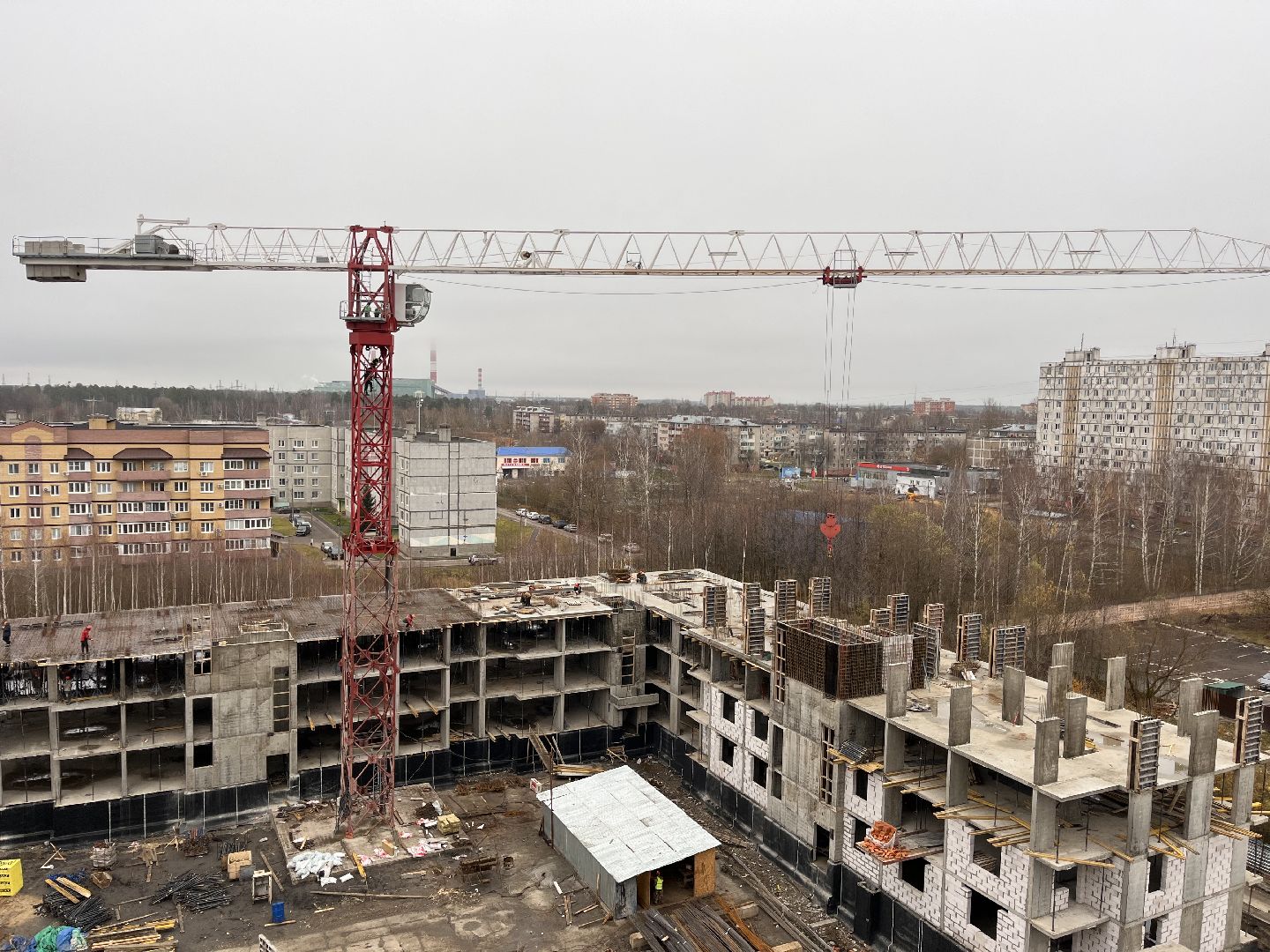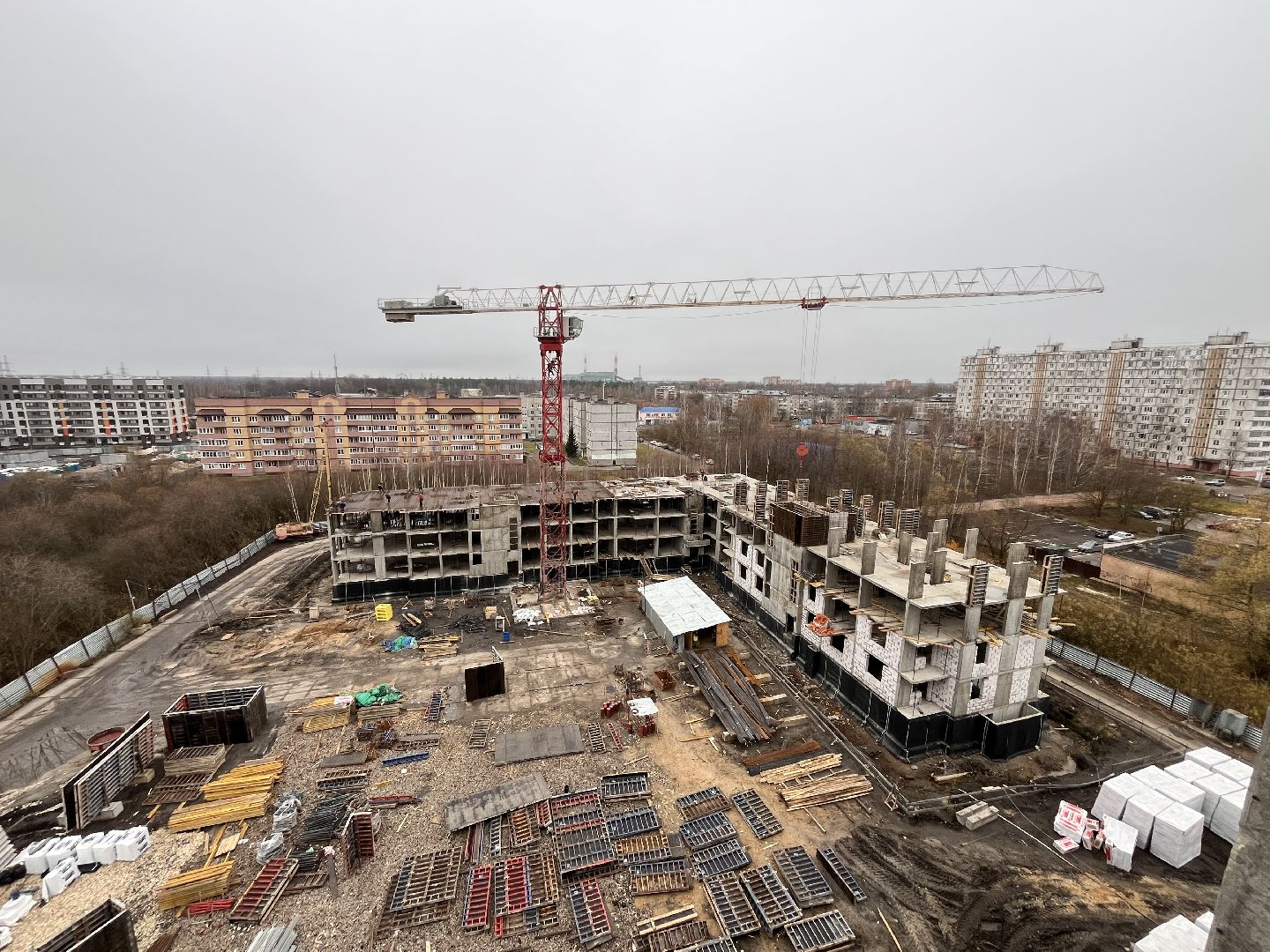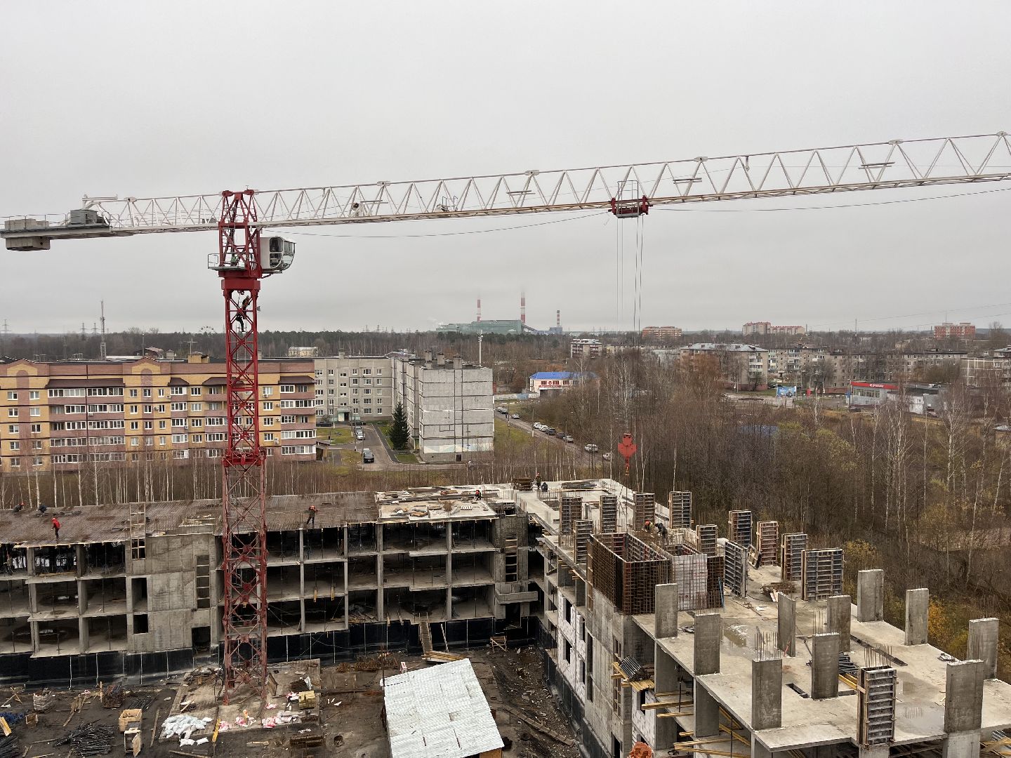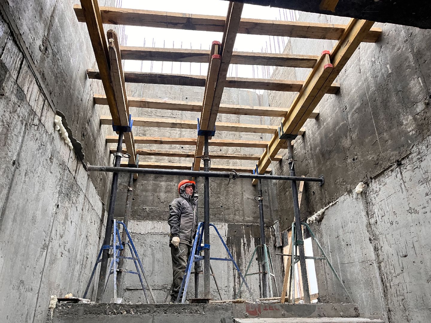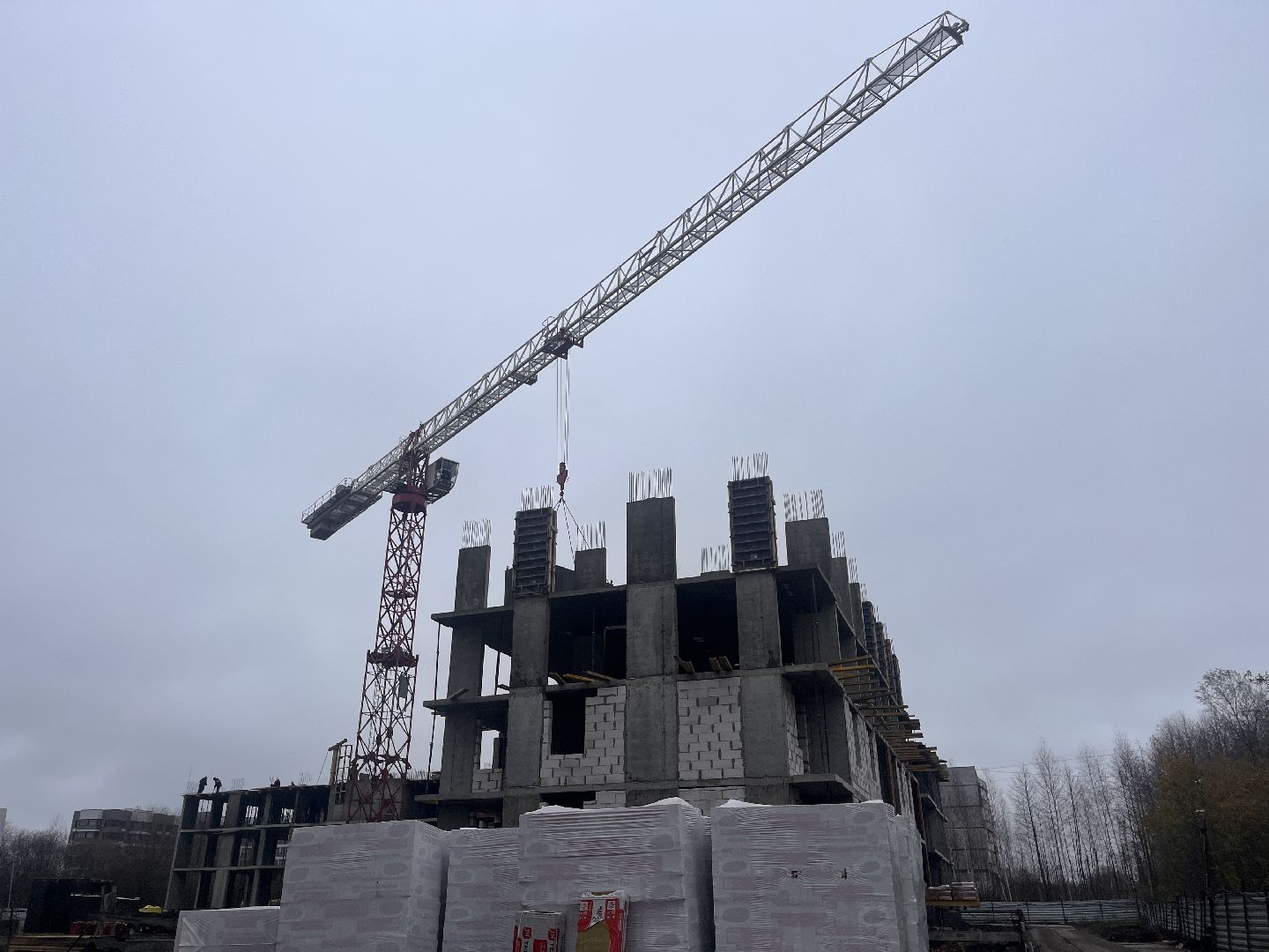 Сейчас строители сосредоточены на первом корпусе: завершают монолитные работы и ведут закрытие теплового контура здания. Уже на следующей неделе планируют приступить к установке окон.