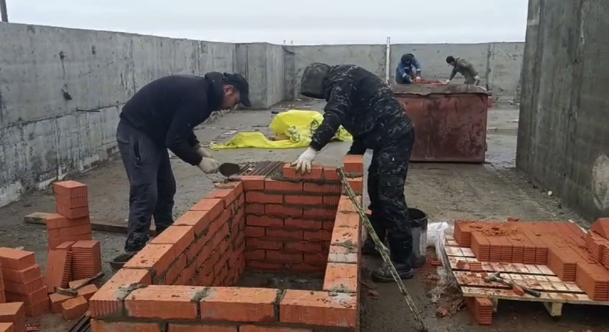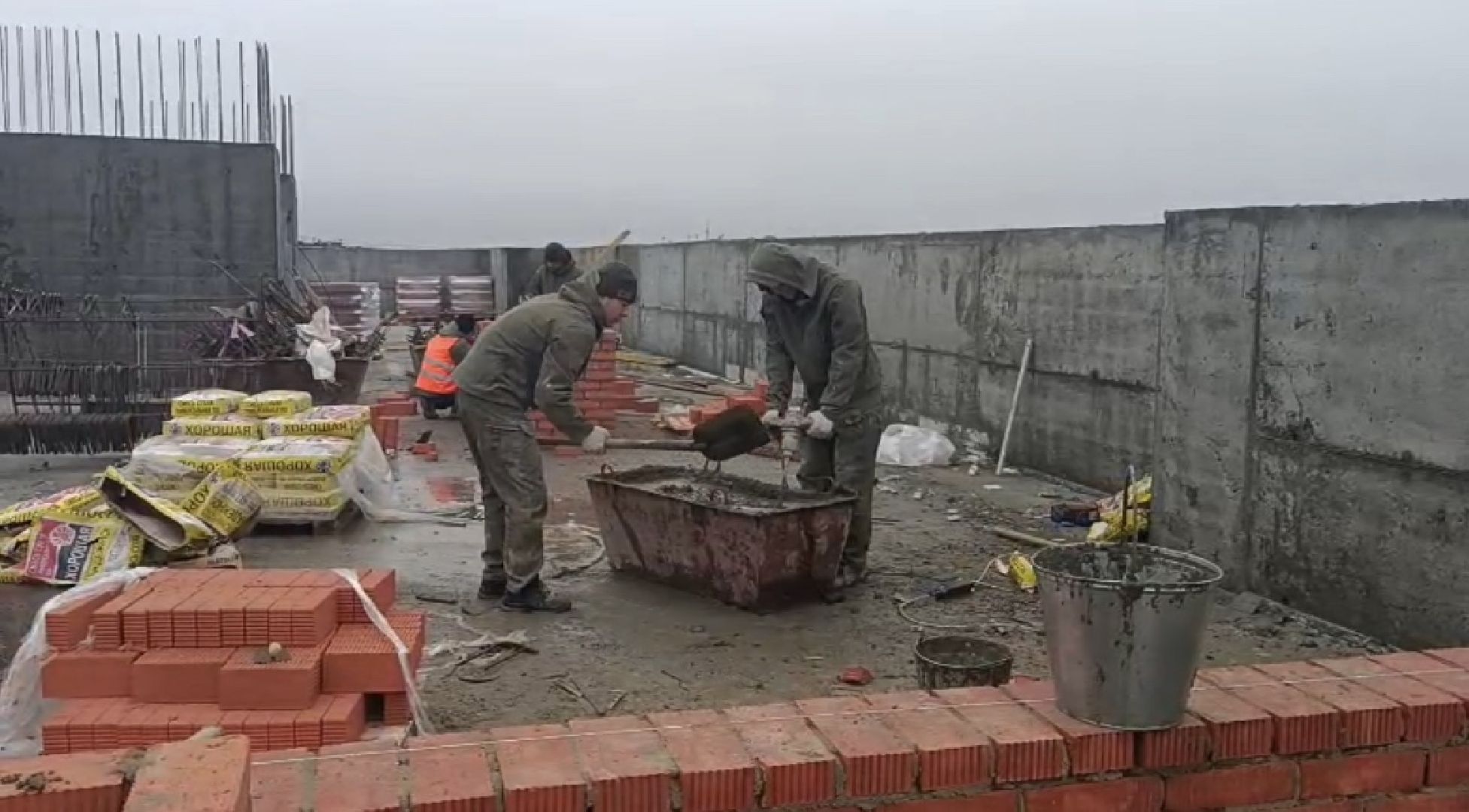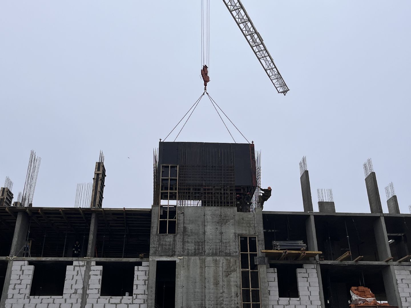 Во втором корпусе продолжают монолитные работы, параллельно кладут кирпич.