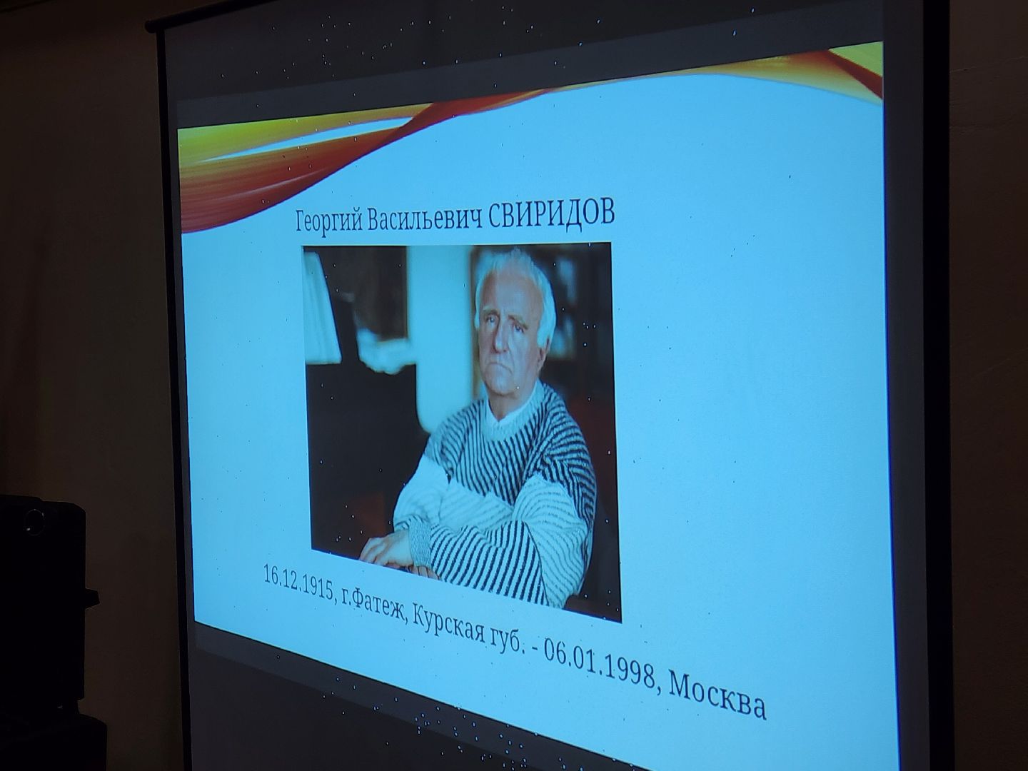 Познакомить с медицинских работников и пациентов с классической музыкой приехал руководитель межрегионального «Шаляпинского Центра» Сергей Есин — лауреат многих престижных российских и международных конкурсов. В его программе прозвучали произведения Генделя, Скарлатти, Даргомыжского и Свиридова. Сергей Есин напомнил, что в этом году музыкальный мир отмечает 110-летие со дня рождения Георгия Свиридова, автора знаменитой сюиты «Время, вперёд!».