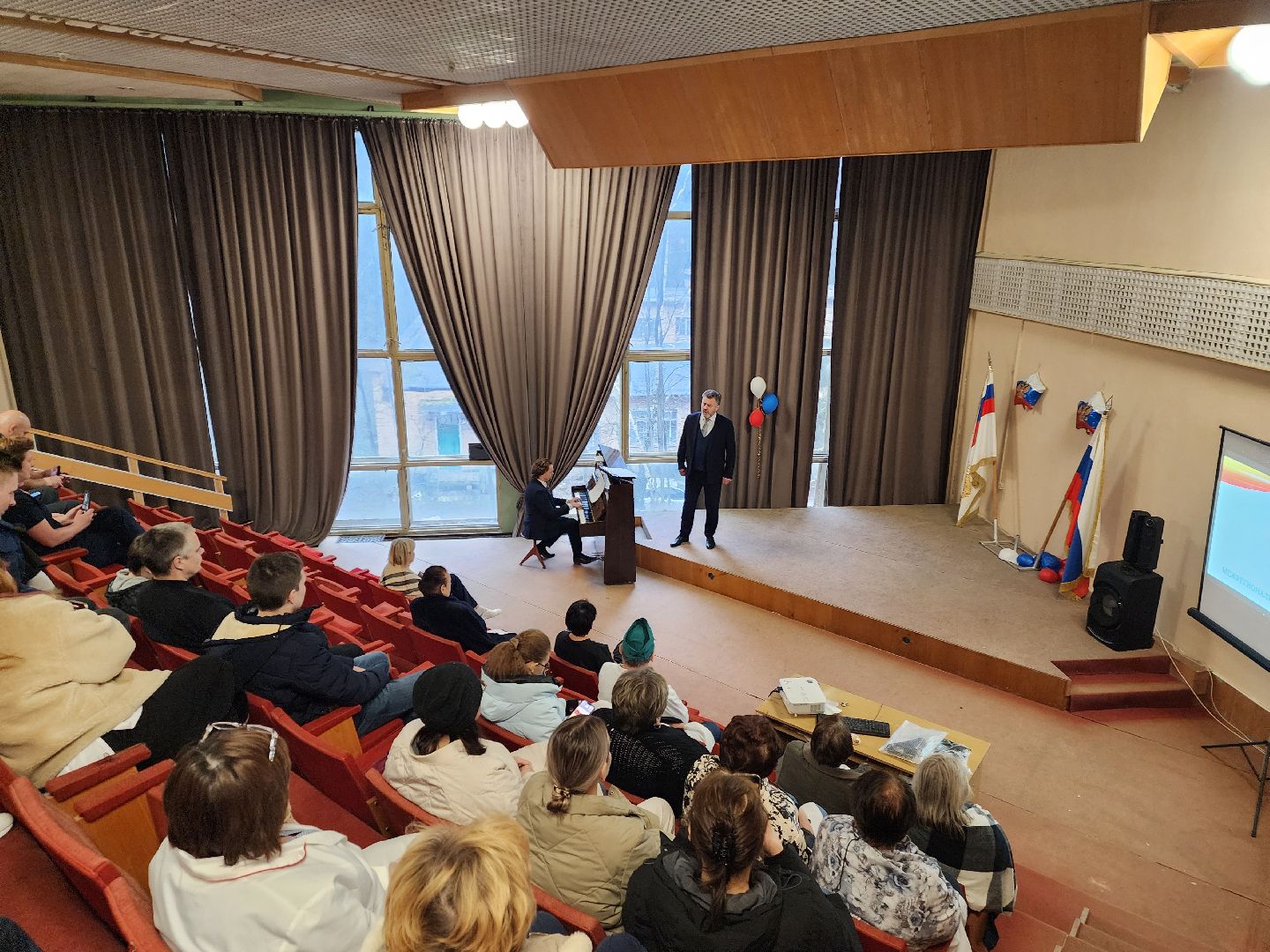 Глубокий бас и эмоциональное исполнение тронули зрителей. Встреча прошла в конференц-зале, который на время превратился в концертную площадку. Аккомпанировал певцу на фортепиано врач-педиатр поликлинической службы, тоже лауреат международных конкурсов, Дмитрий Полянин. Именно его дружба с Сергеем Есиным и помогла организовать эту встречу в медсанчасть №154.