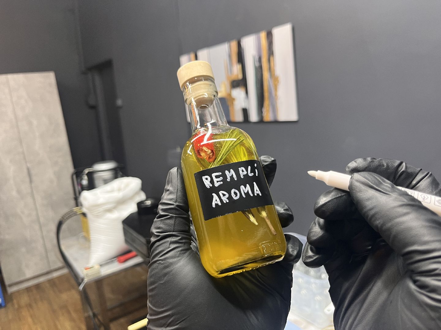 В ассортименте мастерской — широкий выбор масел: из чёрного тмина, конопляное, тыквенное, льняное, горчичное, из грецкого ореха и даже миндальное.