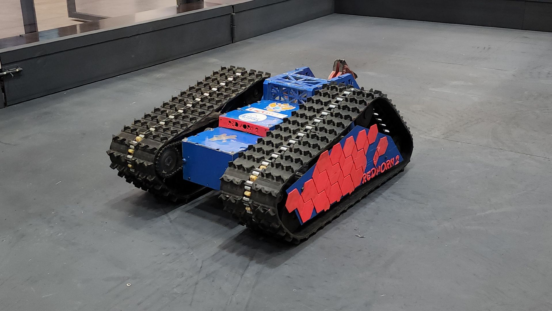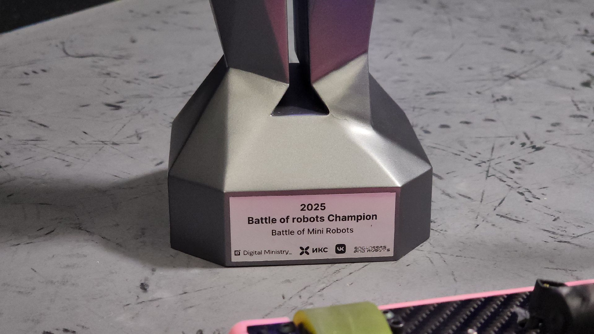 Ребята представили своего робота PinkPong 2, с которым смогли завоевать первое место в категории мини-роботов весом до полутора килограммов.