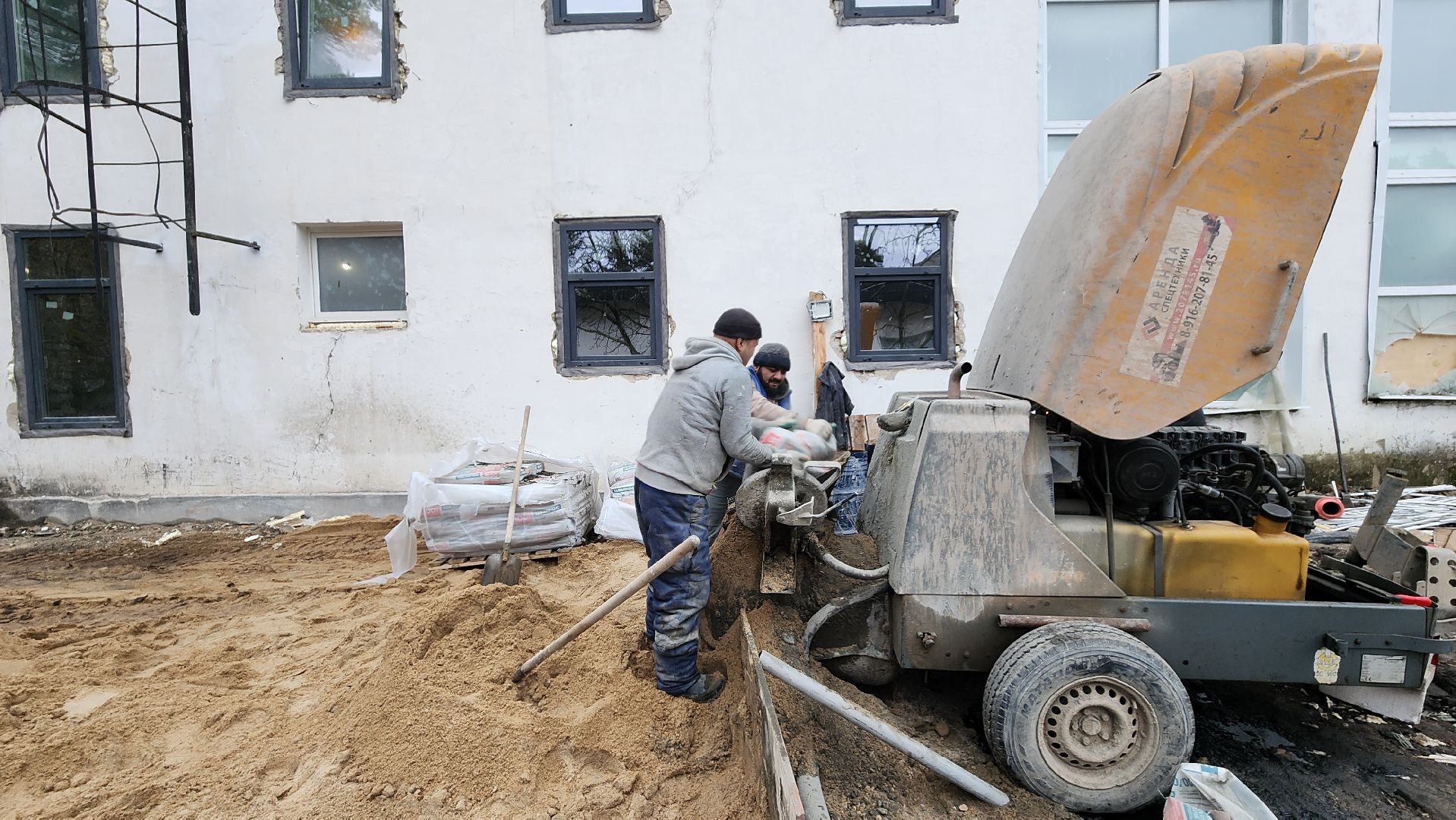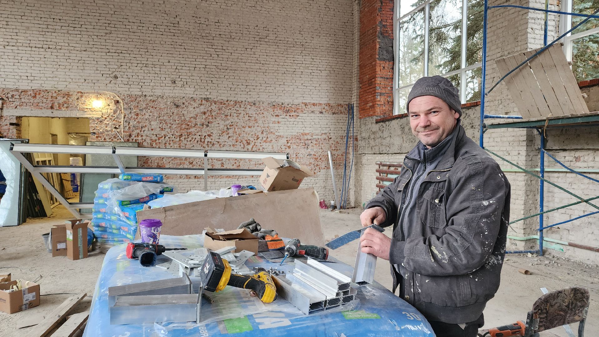 Прямо сейчас идёт установка больших нестандартных окон — так называемых витражей — в спортивном и актовом залах, а также на лестничных маршах.